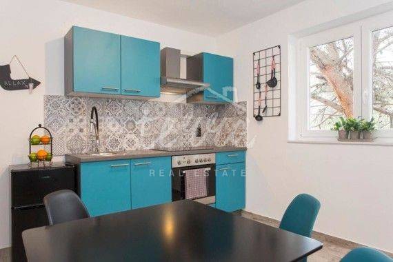 A completely renovated 2-room apartment in Rabac is for sale. It is located on the first floor. Total area 45 m2. It consists of an entrance hall, kitchen with dining room and living room, bedroom, bathroom and terrace, and a small woodshed in the basement. The apartment is categorized with 4 stars, about 1 km from the beach, shops and all facilities that Rabac offers as a developed and well-known tourist destination. It is rented for 100-110 days a year, which provides an excellent opportunity for investment. It is sold fully equipped and no additional investments are required, and it can only continue to be rented out or used personally.