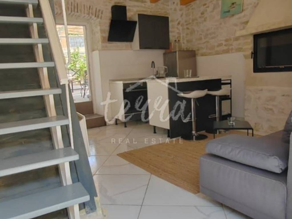On the ground floor of 20 square meters there is a fully equipped kitchen, living room, toilet and staircase, as well as an exit to the terrace. On the floor of the same square footage, there is a bathroom and a bedroom, and in the attic there is a space that you can use as an additional bedroom, work space or lounge.