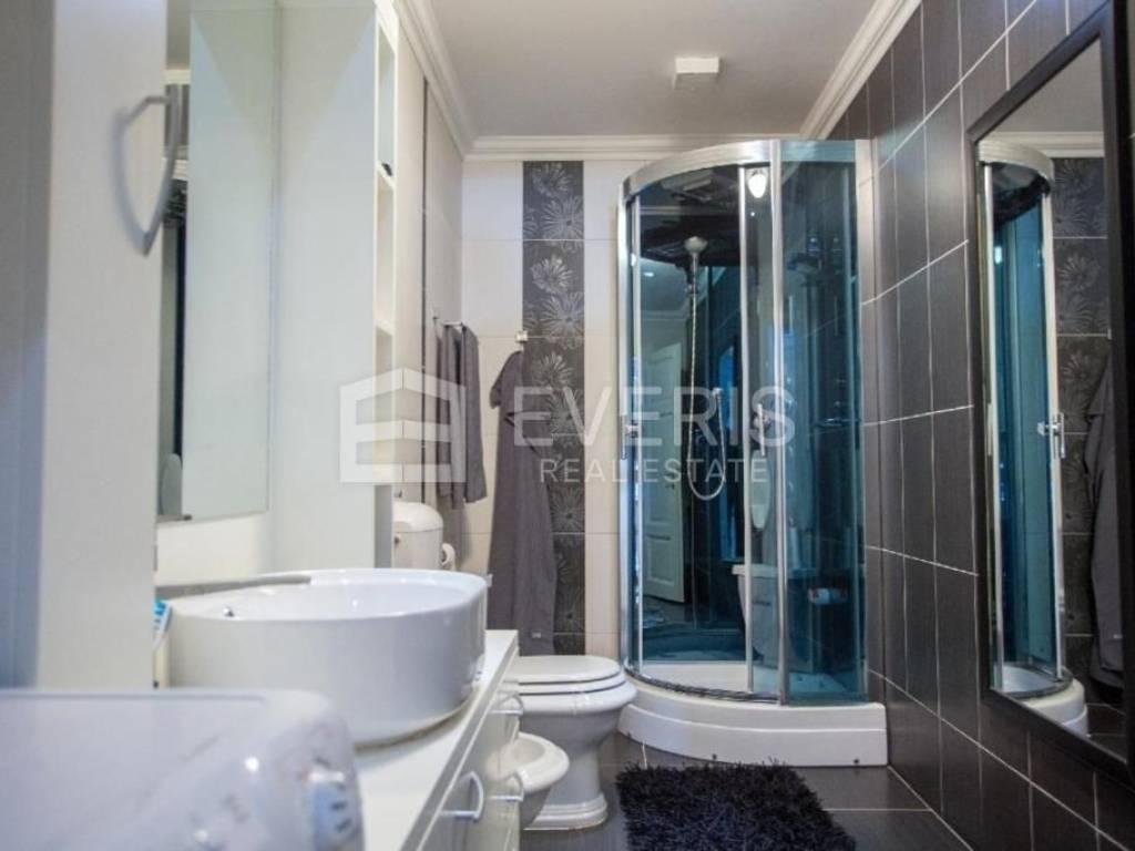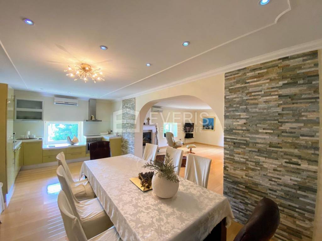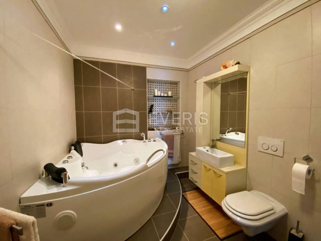 The apartment spreads over 123 m2 and consists of a spacious living room with fireplace, two bedrooms, kitchen, dining room and two bathrooms.