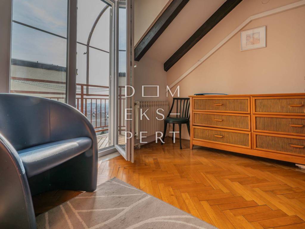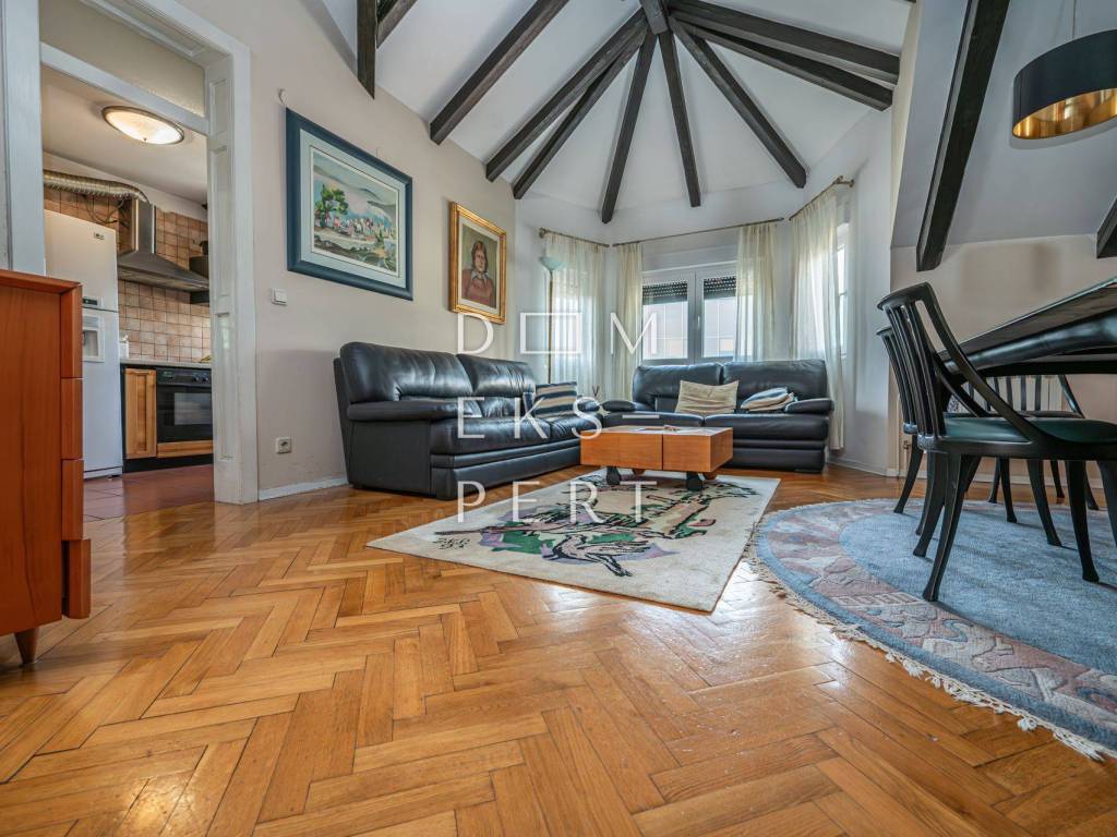 For Sale: Furnished and move-in ready two-bedroom apartment in Maksimir – 107.04 m² A well-maintained two-bedroom apartment on the top floor of a small residential-commercial building without an elevator. The apartment is oriented east-west and offers a spacious layout.