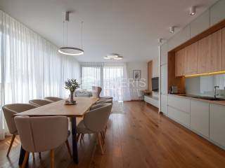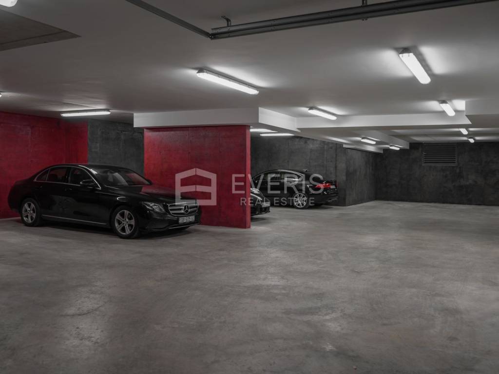 The apartment has two parking spaces in the underground garage, the building has an elevator.