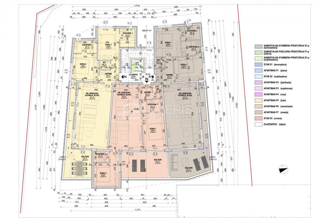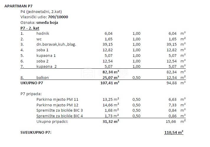 • two bedrooms, two bathrooms, toilet, hallway, kitchen, dining room and living room; interior area of the apartment: 82.34 m2 / total area of the apartment: 107.41 m2.