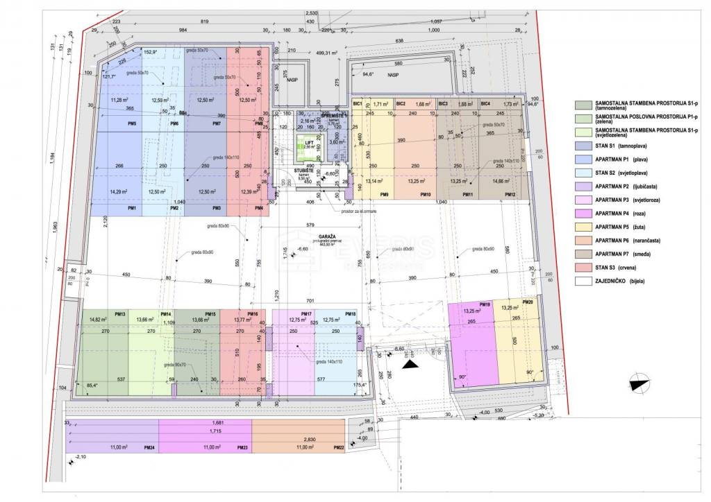 • two garage parking spaces of 13.25 m2 and 14.66 m2