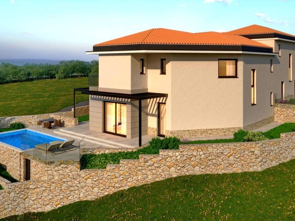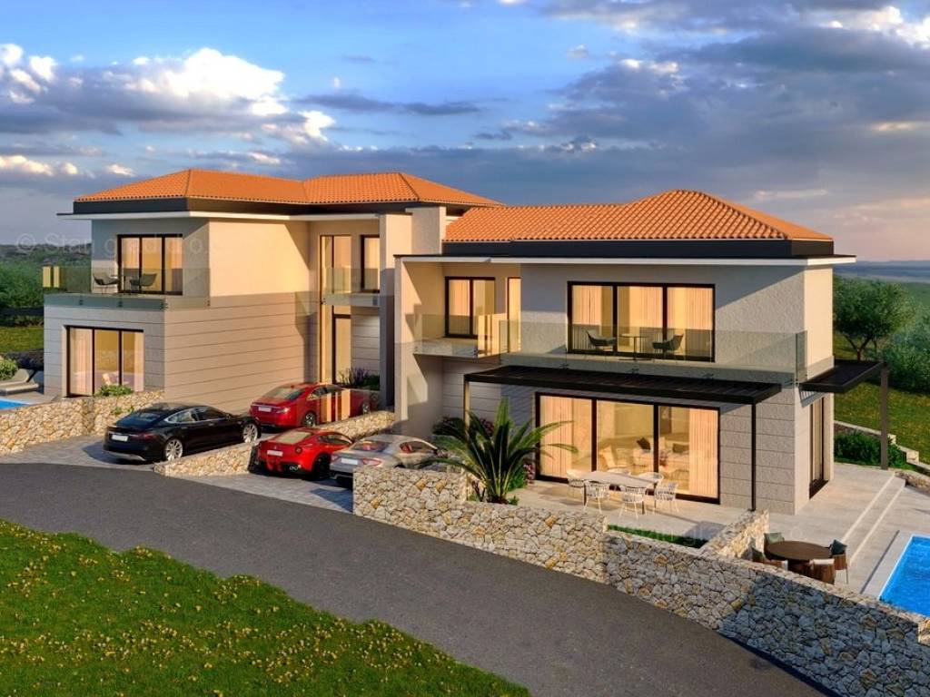 Dall'ampia gamma di immobili offerti da Stan Grad Immobilien, spicca una casa bifamiliare molto lussuosa nella regione dell'isola di Krk. Questo bellissimo duplex si trova in una posizione molto attraente vicino al mare e al centro del centro turistico di Vrbnik. La casa di lusso è costruita non del tutto su 2 piani. La casa copre una superficie totale di 187 m2. Questa zona comprende al piano terra un ingresso, un ripostiglio, un locale tecnico, una lavanderia, un wc, una camera, un ampio soggiorno con cucina e sala da pranzo, con accesso al terrazzo e giardino. Una scala interna conduce al piano dove si trovano un ingresso, 3 camere da letto, ognuna con il proprio bagno e uscita sul balcone. La proprietà dispone anche di un bellissimo giardino paesaggistico con pergolato, piscina e zona prendisole. E' presente un ripostiglio esterno sul suddetto lotto di proprietà ed è possibile parcheggiare comodamente due auto. Inoltre è importante sottolineare che la casa gode di una fantastica vista panoramica sul mare. Il venditore della casa garantisce un'adeguata documentazione di proprietà e un rapido trasferimento della proprietà dell'immobile. L'agenzia Stan Grad Immobilien ti fornirà tutti i servizi necessari durante la registrazione e il trasferimento di immobili. Il completamento previsto dei lavori è la primavera del 2024
