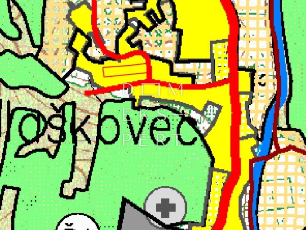 Zemljište se sastoji od tri parcele i pravokutnog je oblika.