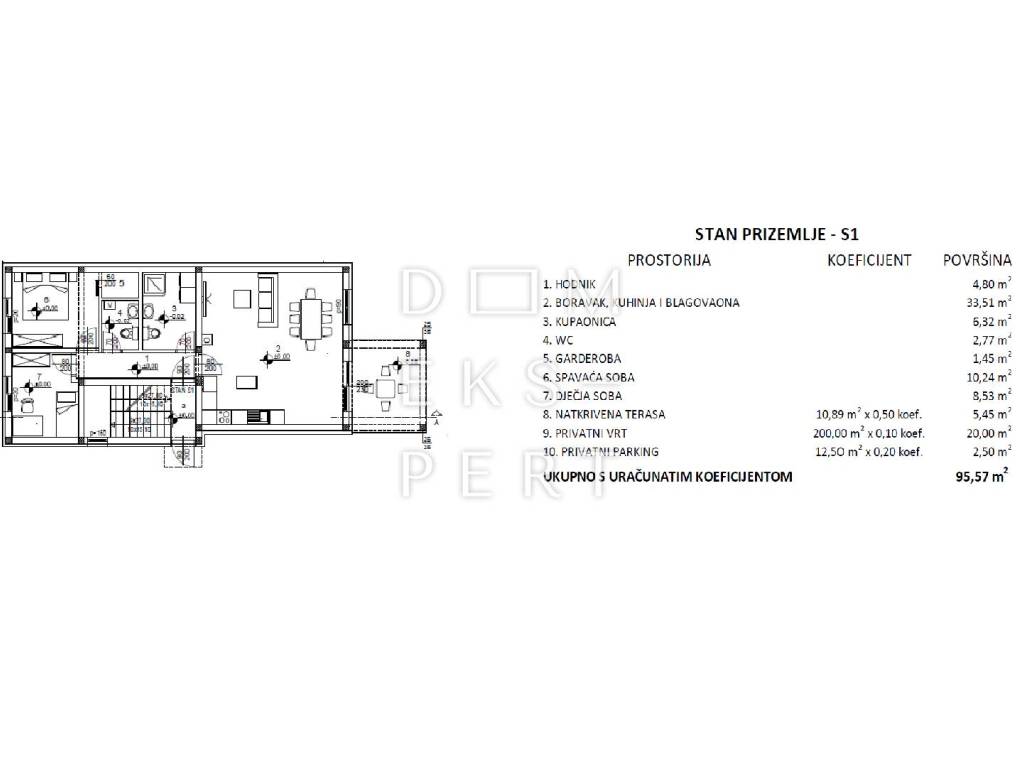 A 2-bedroom ground-floor apartment with a private garden is for sale in a residential building in Sesvete (Zagreb), with a total saleable area of 95.57 m².