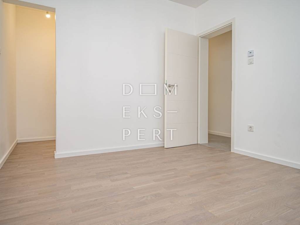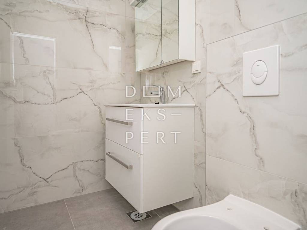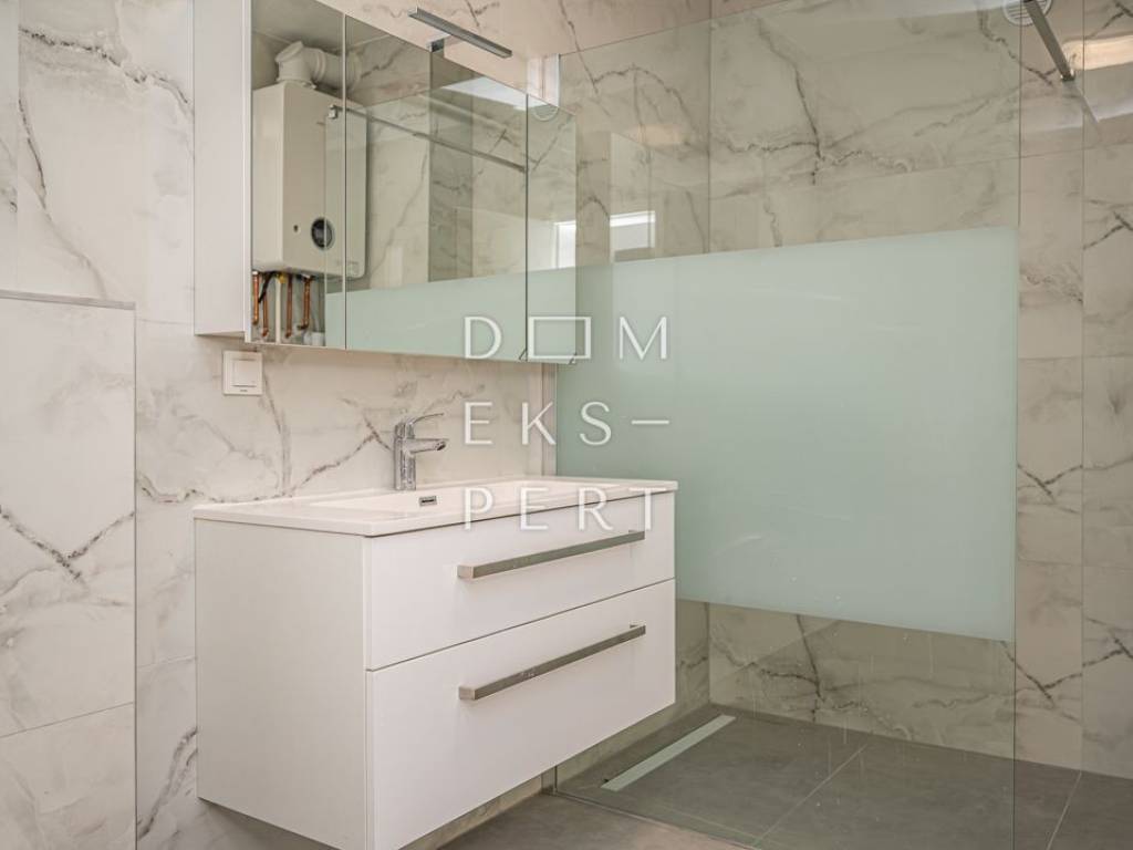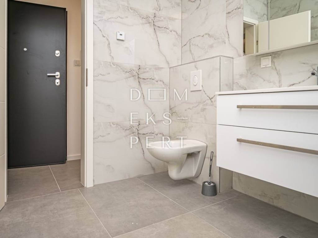 Features & equipment PVC windows with triple-glazed insulated glass, aluminium electric roller shutters and insect screens Facade insulation: stone wool 1st class ceramic tiles Three-layer parquet flooring suitable for underfloor heating Bathroom fitted with sanitary ware and furniture Gas underfloor heating, each room with its own thermostat Air conditioning in the living room Interior doors with frames Low-noise plumbing pipes Video intercom Brick partition walls between rooms