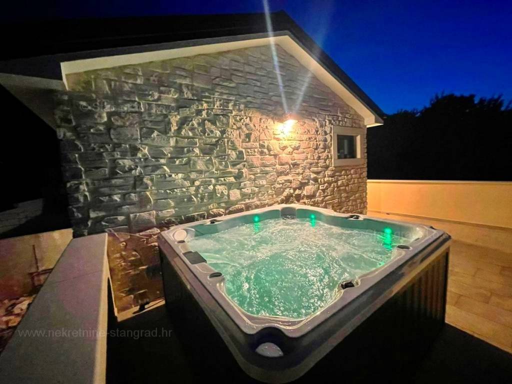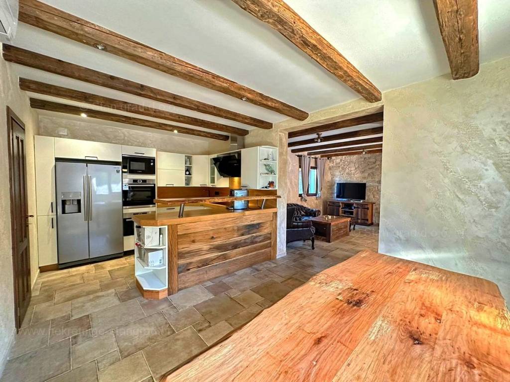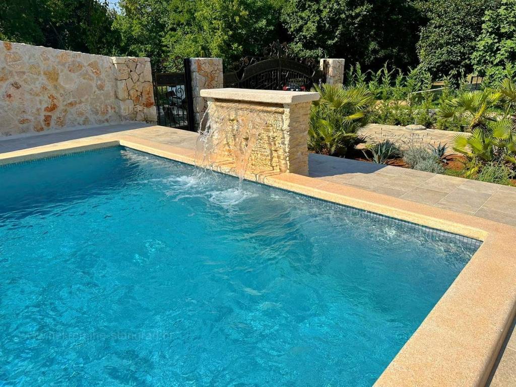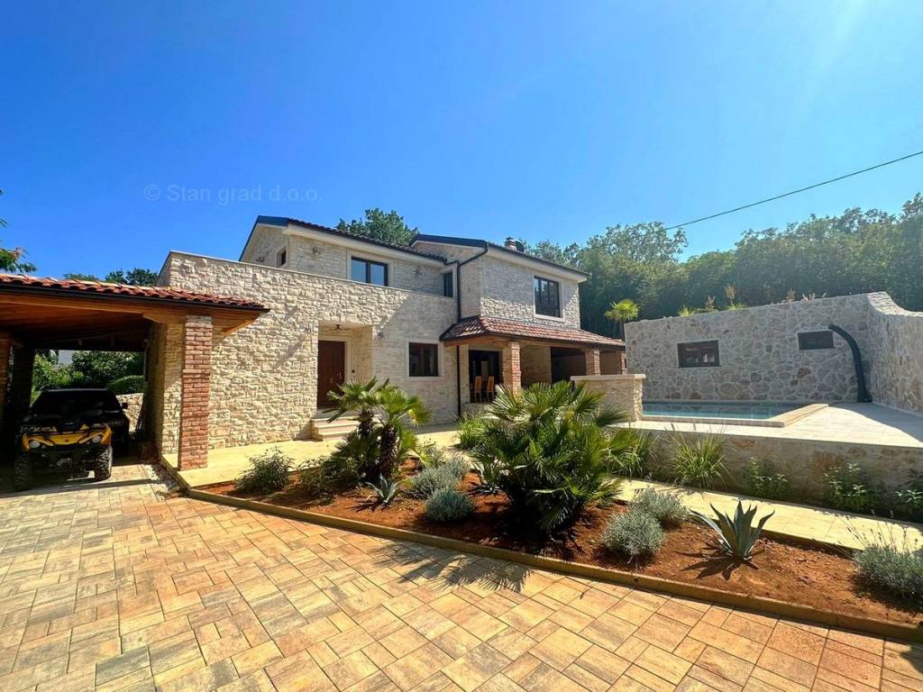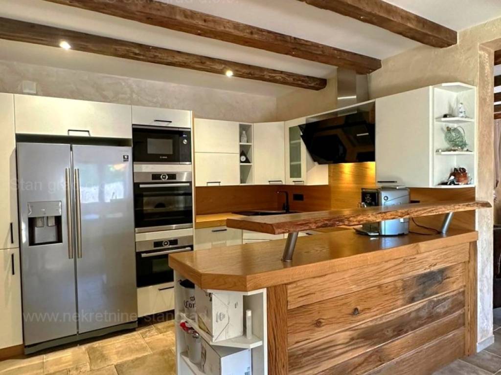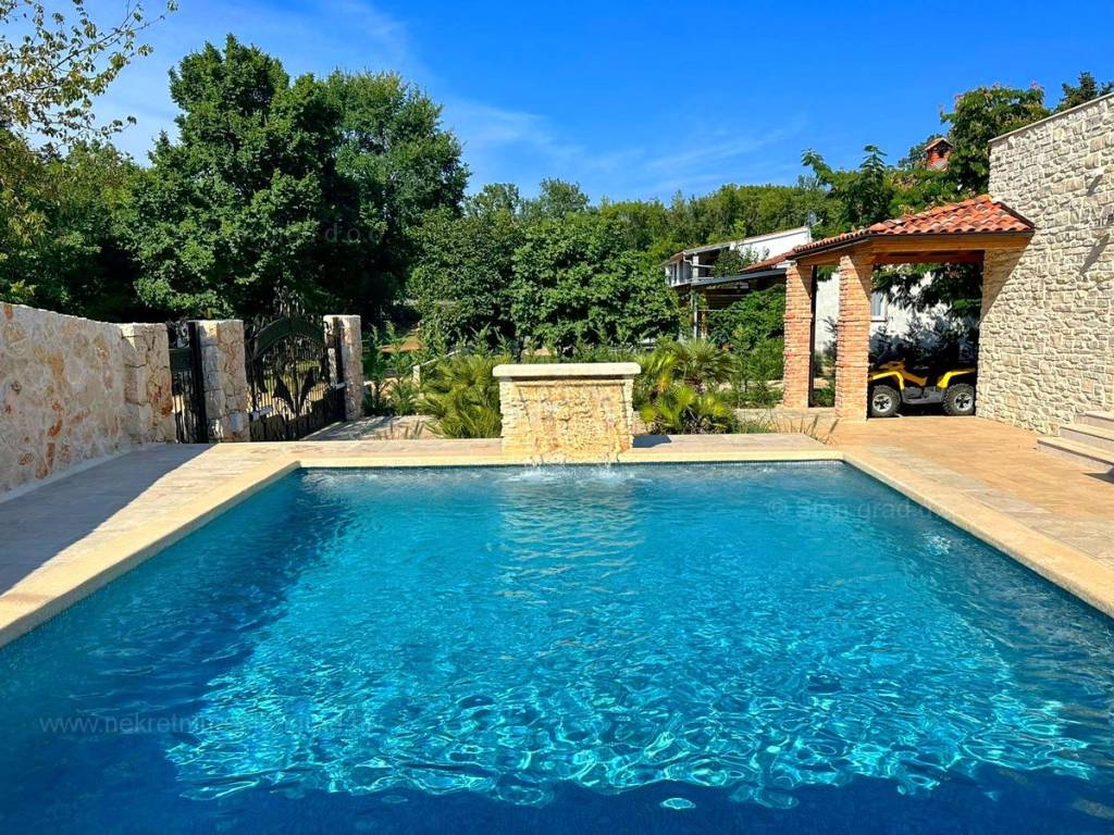 Dall'eccellente offerta immobiliare dell'agenzia Stan Grad Immobilien nel Quarnero sviluppato e avanzato, spicca una bellissima casa nella destinazione costiera adriatica di alta qualità e desiderabile, l'isola di Krk. Questa casa eccezionale si trova in una posizione tranquilla nelle immediate vicinanze di Soline e del mare. Strutturalmente si tratta di una casa ad un solo piano con dependance. L'edificio estremamente attraente è composto da un totale di 2 piani. La casa occupa una superficie totale di 220 m2. Sulla superficie citata si trova un ampio soggiorno con accesso ad un terrazzo coperto, una cucina con zona pranzo e un bagno al piano terra. Al primo piano della casa ci sono 3 camere da letto, due delle quali hanno il proprio bagno e accesso ad un terrazzo con vasca idromassaggio. La proprietà è completamente attrezzata con mobili moderni e attrezzature tecniche moderne e di alta qualità. All'interno della proprietà si trova un giardino ben curato con piscina, zona solarium, zona grill e casetta da giardino in pietra con sauna e sala macchine per la piscina. Diverse auto possono essere comodamente parcheggiate nel giardino della proprietà. In aggiunta a quanto sopra si segnala che la casa gode di una bellissima vista su questa località di mare. Questa casa è di proprietà di una persona fisica e il trasferimento della sua proprietà è soggetto all'imposta sul trasferimento immobiliare pari al 3%. Il venditore della casa garantisce la corretta documentazione di proprietà e un rapido trasferimento della proprietà dell'immobile. Venite a trovarci e provate la sensazione di soddisfazione e sicurezza quando acquistate un immobile nel Quarnero. Oltre alla presentazione professionale delle condizioni naturali e giuridiche dell'immobile, se decidete di acquistare, l'agenzia Stan Grad Immobilien sarà lieta di assistervi nel trasferimento di proprietà dell'immobile.