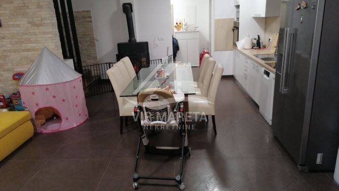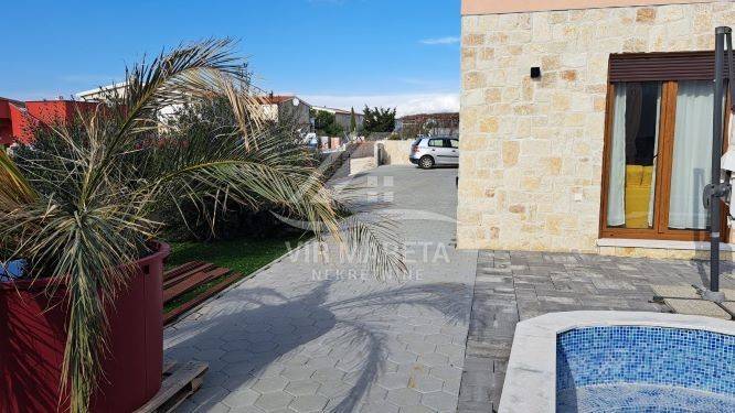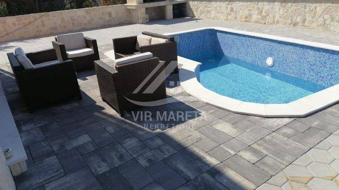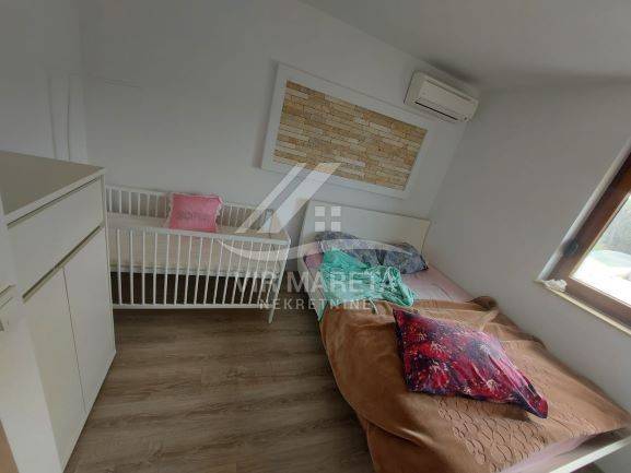 A house with a swimming pool on a plot of 490 m² in a quiet location. It consists of a ground floor, a first floor and a garage. The ground floor consists of a spacious living room, kitchen, bathroom and terrace. There is also a garage on the ground floor. The first floor consists of three bedrooms and a bathroom. The first floor is reached by internal stairs. There is a one-room apartment above the garage. In the yard there is a swimming pool, barbecue, garden and three parking spaces. The house is completely decorated and furnished, and no additional investments are required. It was built in 2022. The house has a concrete water tank and a black pit. Proper ownership, and no encumbrances.