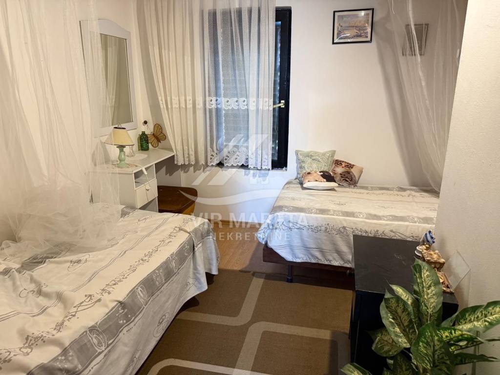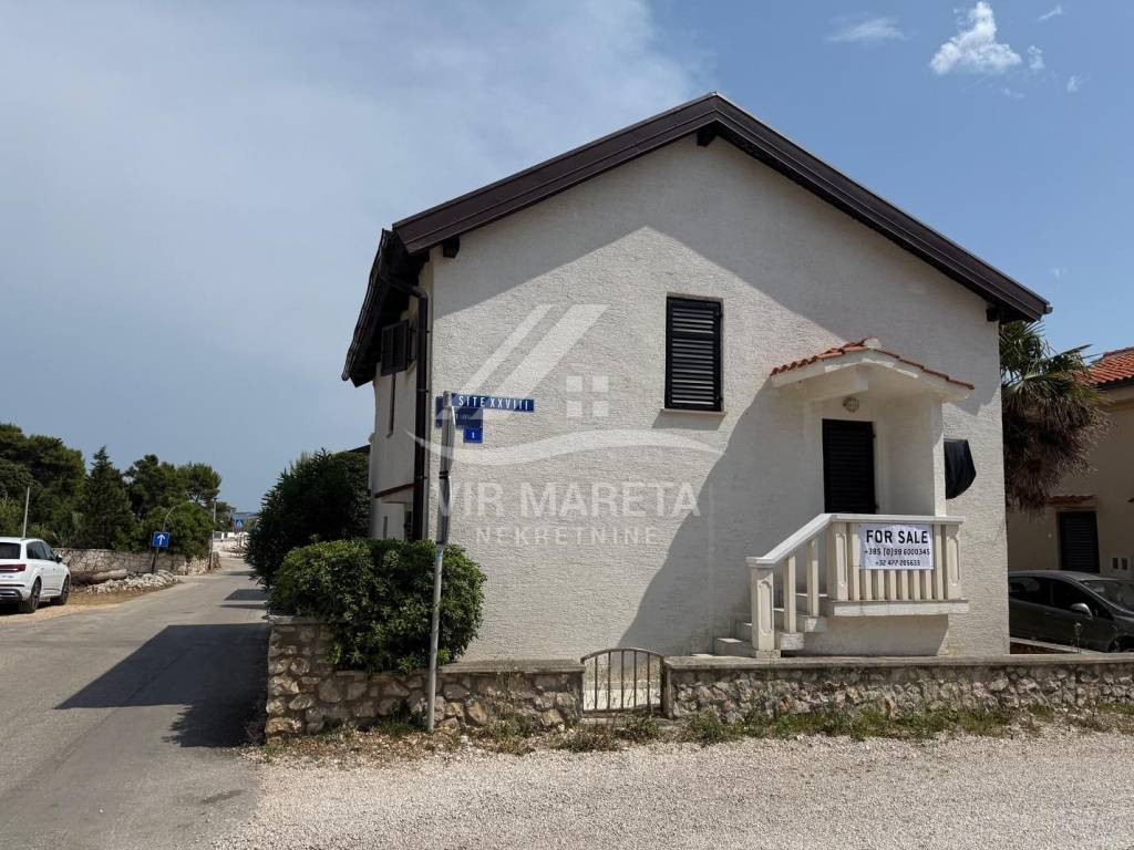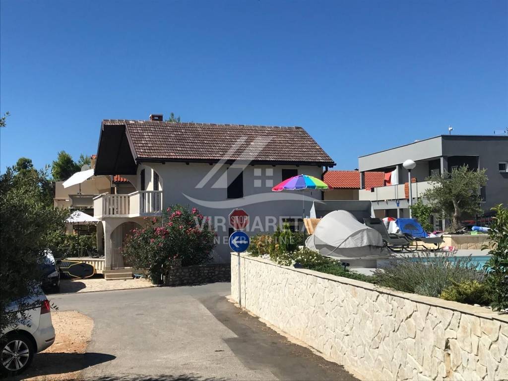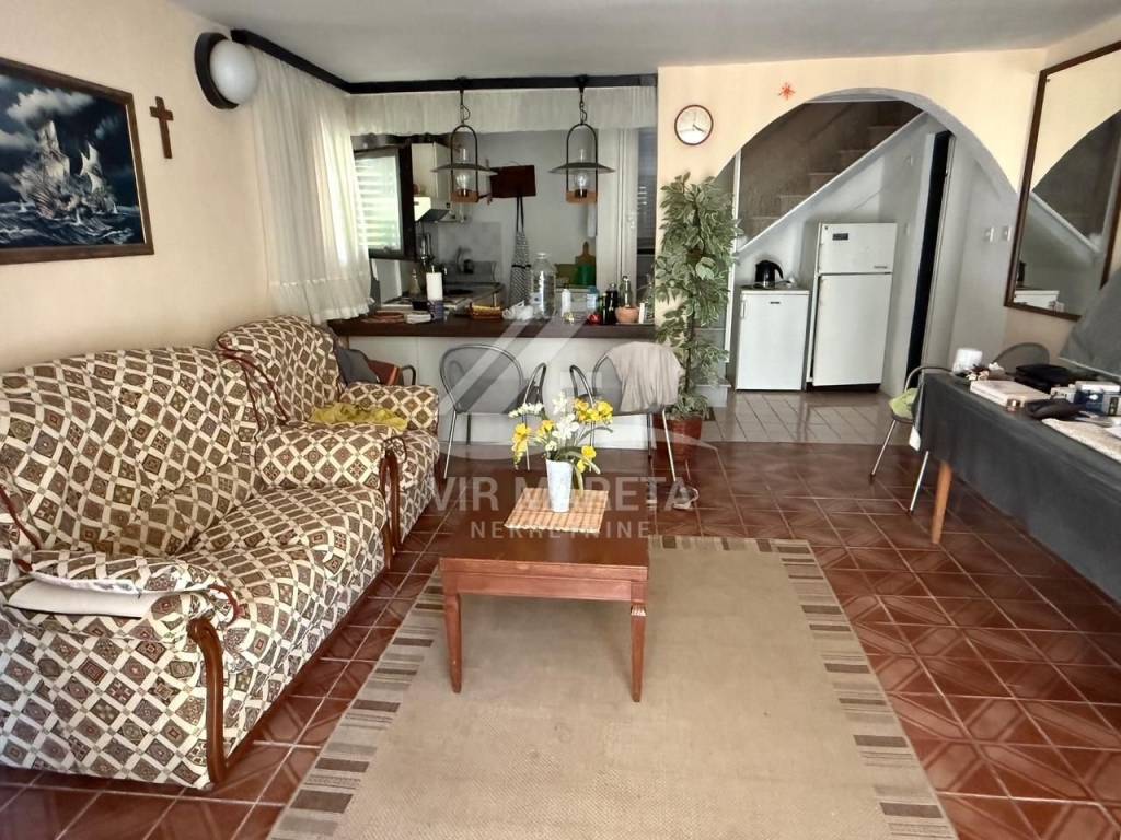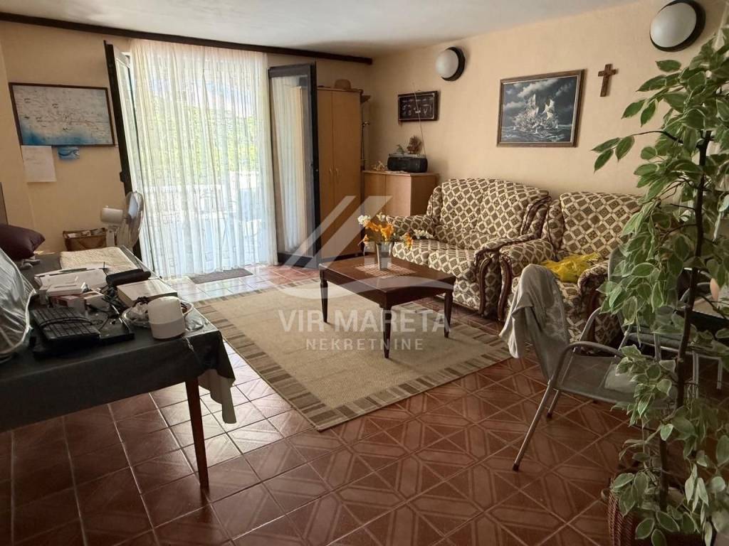 Detached house with two residential units on the south side of the island of Vir, only 20 meters from the sea. The residential unit on the ground floor consists of a large and spacious living room, kitchen with dining room, bathroom with toilet, garage and spacious terrace. On the first floor there are three bedrooms, a mini kitchen and bathroom with toilet and a terrace with a sea view. The first floor is accessed by internal stairs and also has a separate entrance from the north side of the house. The house is fully furnished, air-conditioned, has a water cistern, a septic tank for wastewater, as well as an electricity connection. The house is sold with all furniture as well as the boat that is in the garage. The area of the land on which the house is located is 164 m², and the total area of the living space of both residential units is 110 m². The yard is fully landscaped and paved with stone. The property is neat and without encumbrances. If you are looking for peace for a pleasant stay right by the sea, then this is the property.