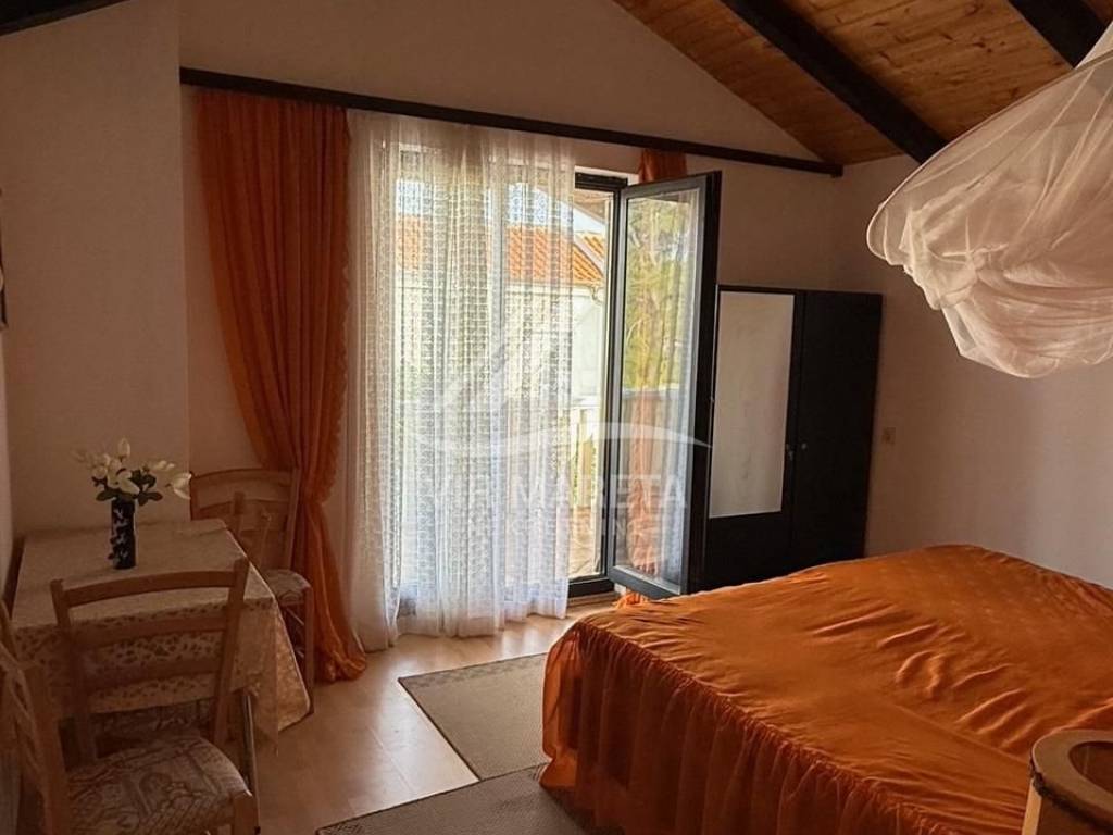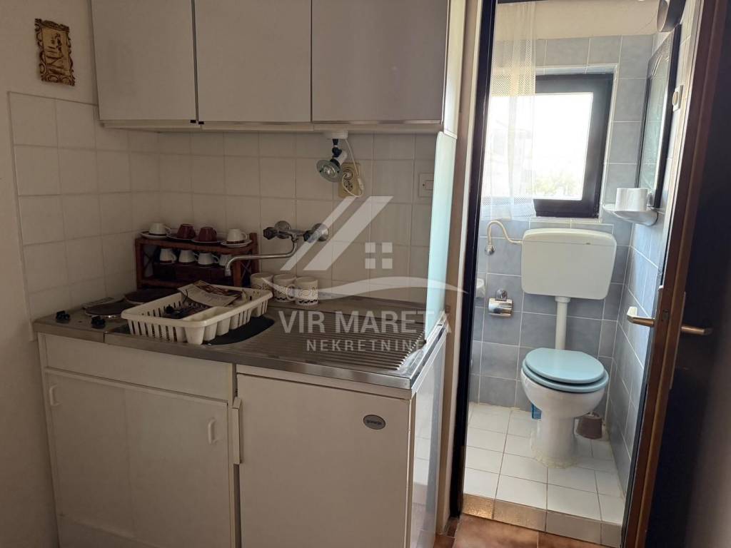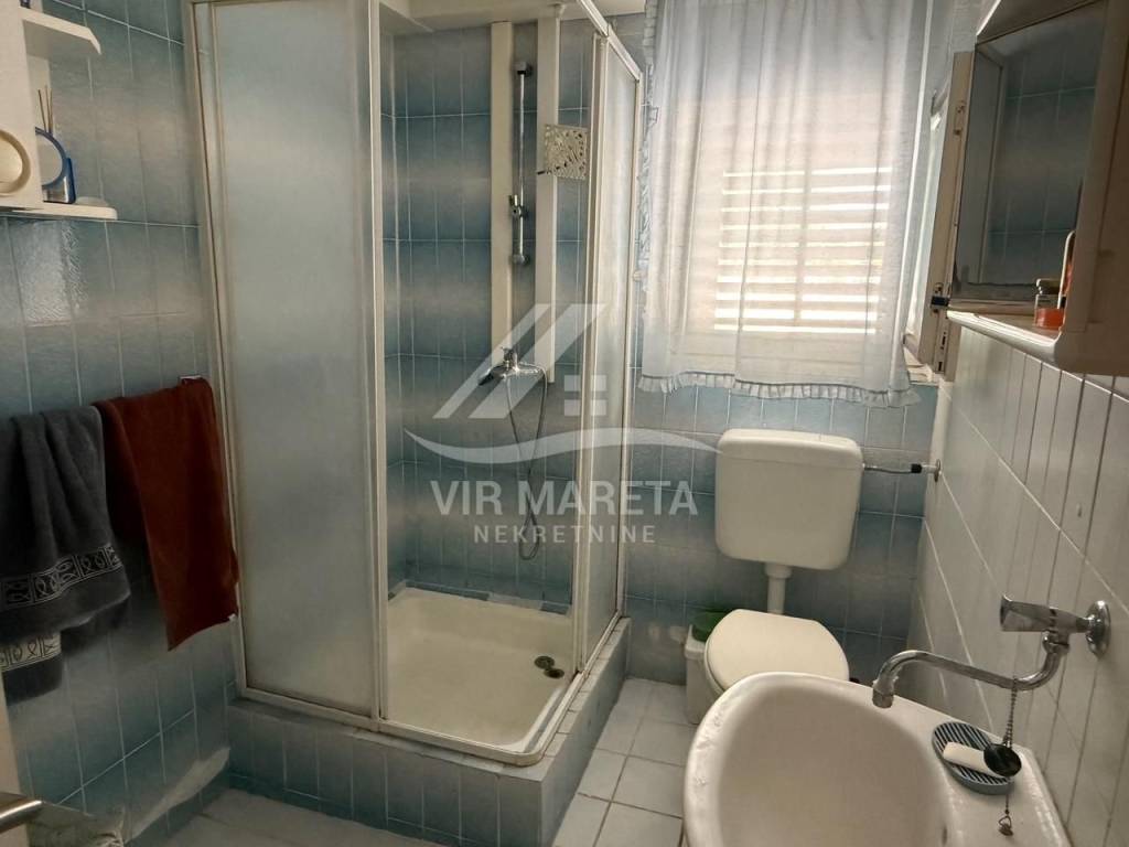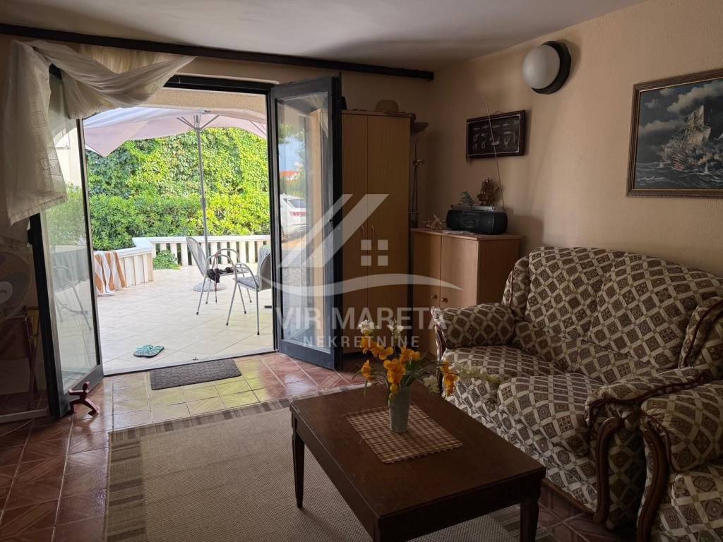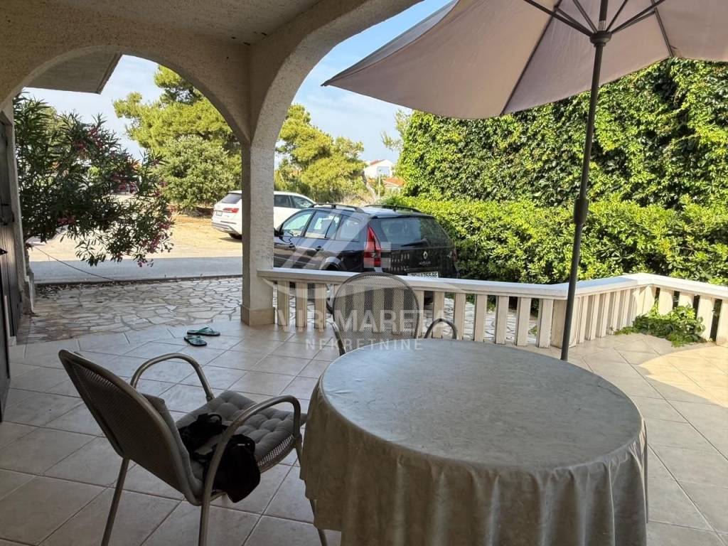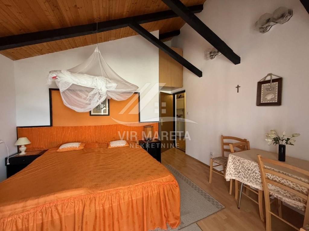 Detached house with two residential units on the south side of the island of Vir, only 20 meters from the sea. The residential unit on the ground floor consists of a large and spacious living room, kitchen with dining room, bathroom with toilet, garage and spacious terrace. On the first floor there are three bedrooms, a mini kitchen and bathroom with toilet and a terrace with a sea view. The first floor is accessed by internal stairs and also has a separate entrance from the north side of the house. The house is fully furnished, air-conditioned, has a water cistern, a septic tank for wastewater, as well as an electricity connection. The house is sold with all furniture as well as the boat that is in the garage. The area of the land on which the house is located is 164 m², and the total area of the living space of both residential units is 110 m². The yard is fully landscaped and paved with stone. The property is neat and without encumbrances. If you are looking for peace for a pleasant stay right by the sea, then this is the property.
