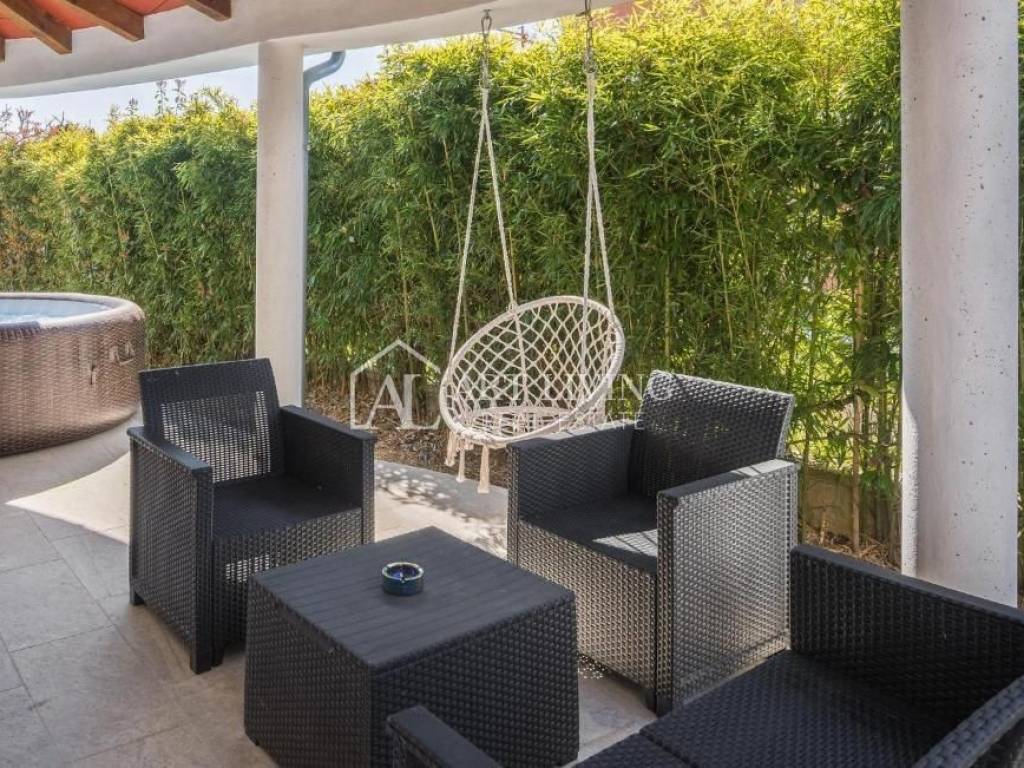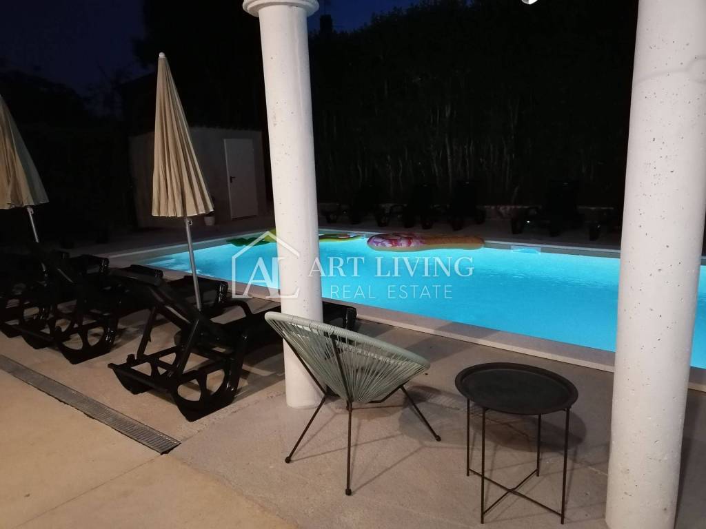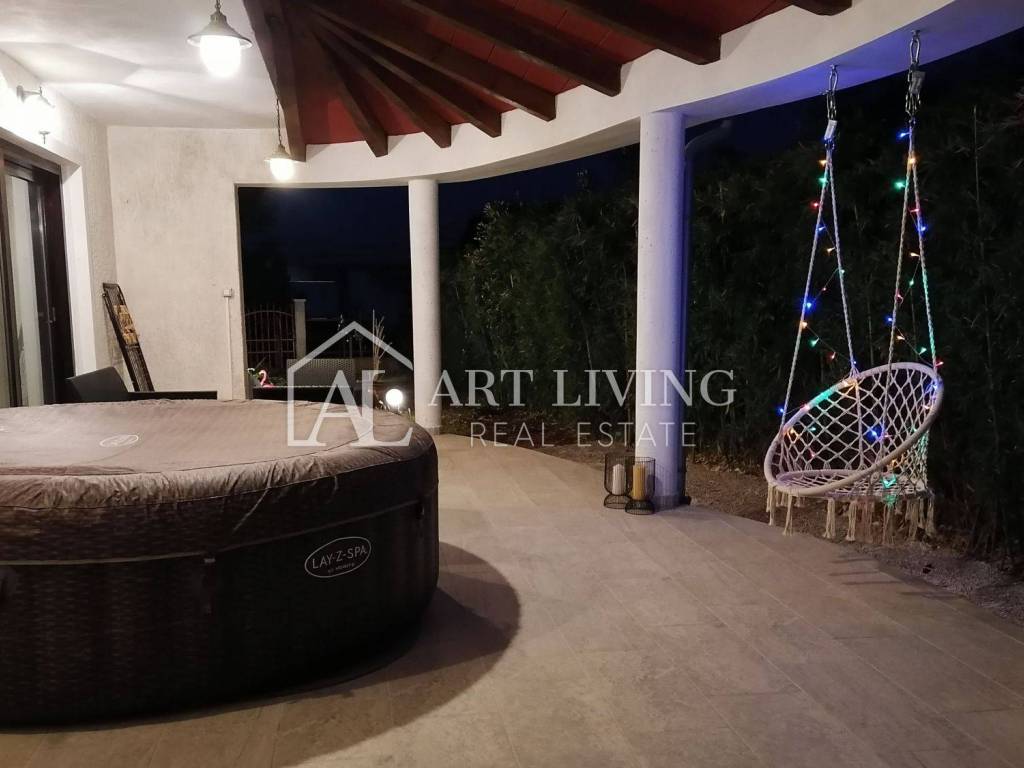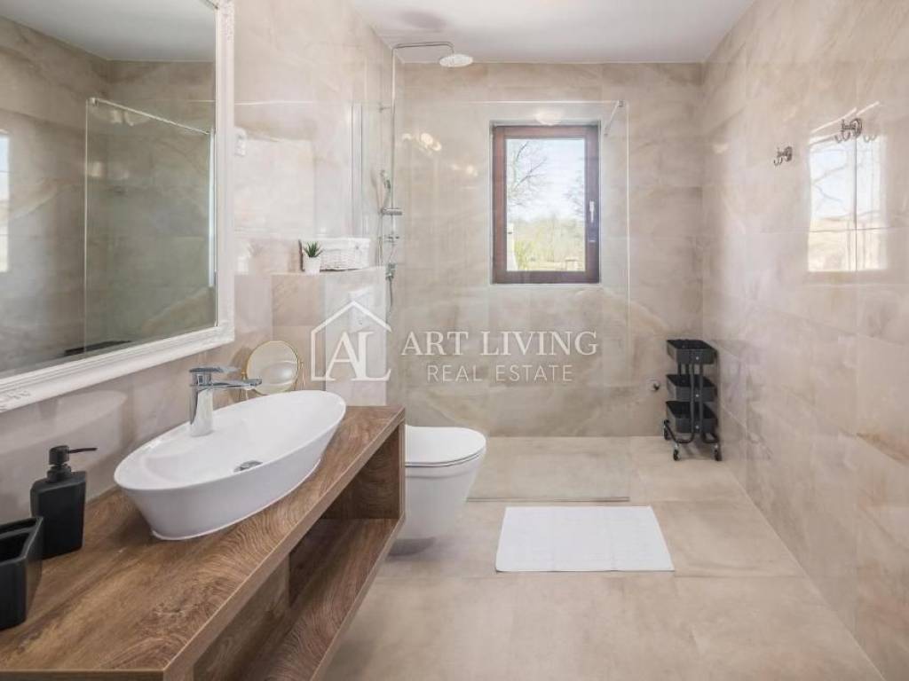 In vendita è una bella casa moderna con piscina e vista mare. La casa si trova in una posizione tranquilla e immersa nella natura e nel verde. Si trova a 5 km dal mare e dalla città di Parenzo, a 50 km dal valico di frontiera e dall'aeroporto (Portorose, Pola,).
