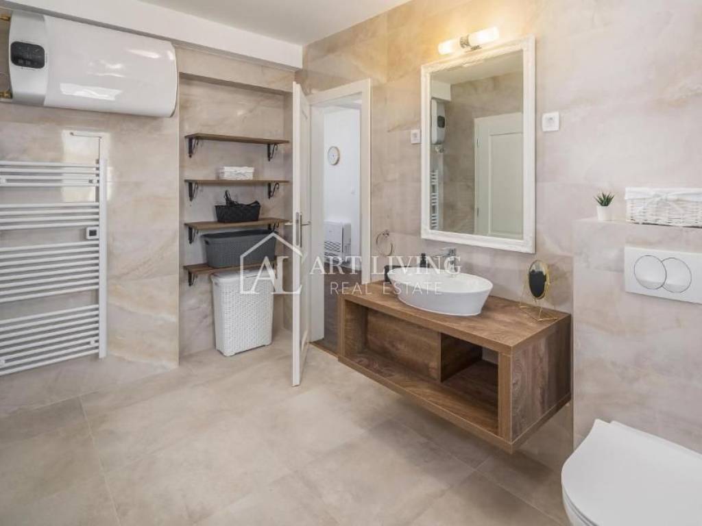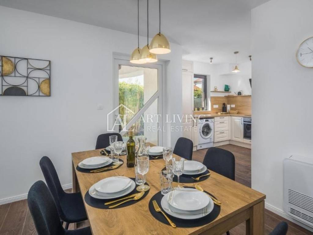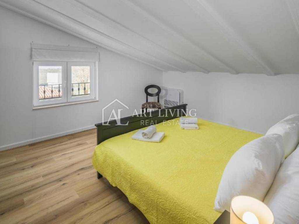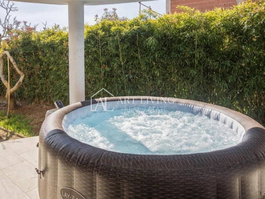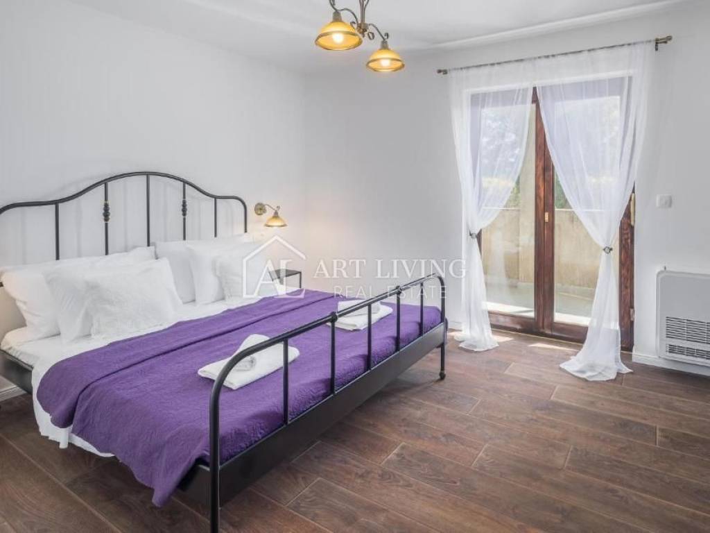 In vendita è una bella casa moderna con piscina e vista mare. La casa si trova in una posizione tranquilla e immersa nella natura e nel verde. Si trova a 5 km dal mare e dalla città di Parenzo, a 50 km dal valico di frontiera e dall'aeroporto (Portorose, Pola,).