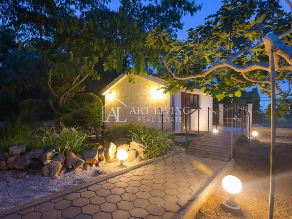 Piscina 40 m2 Stagno con un ponte Casetta da giardino 20 m2 Condizionatori Pompe di calore Stufa a combustibile solido Terreno recintato 1000 m2 Vicino al mare 5 km Vista sul mare Ambiente tranquillo