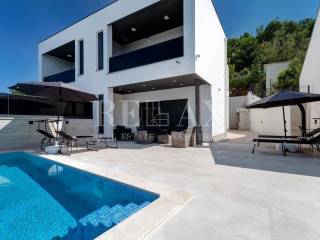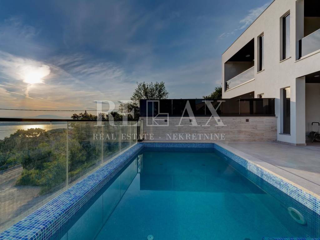 Una casa con piscina e giardino con una bellissima vista sul mare a Dramalj vicino a Crikvenica.