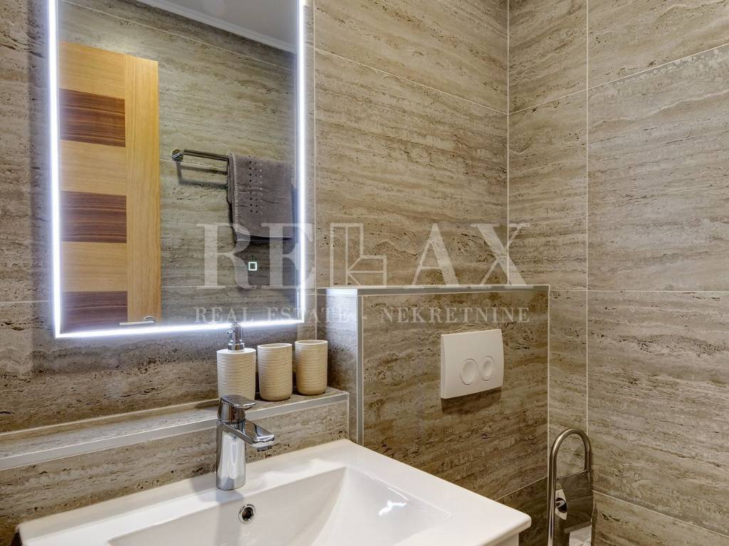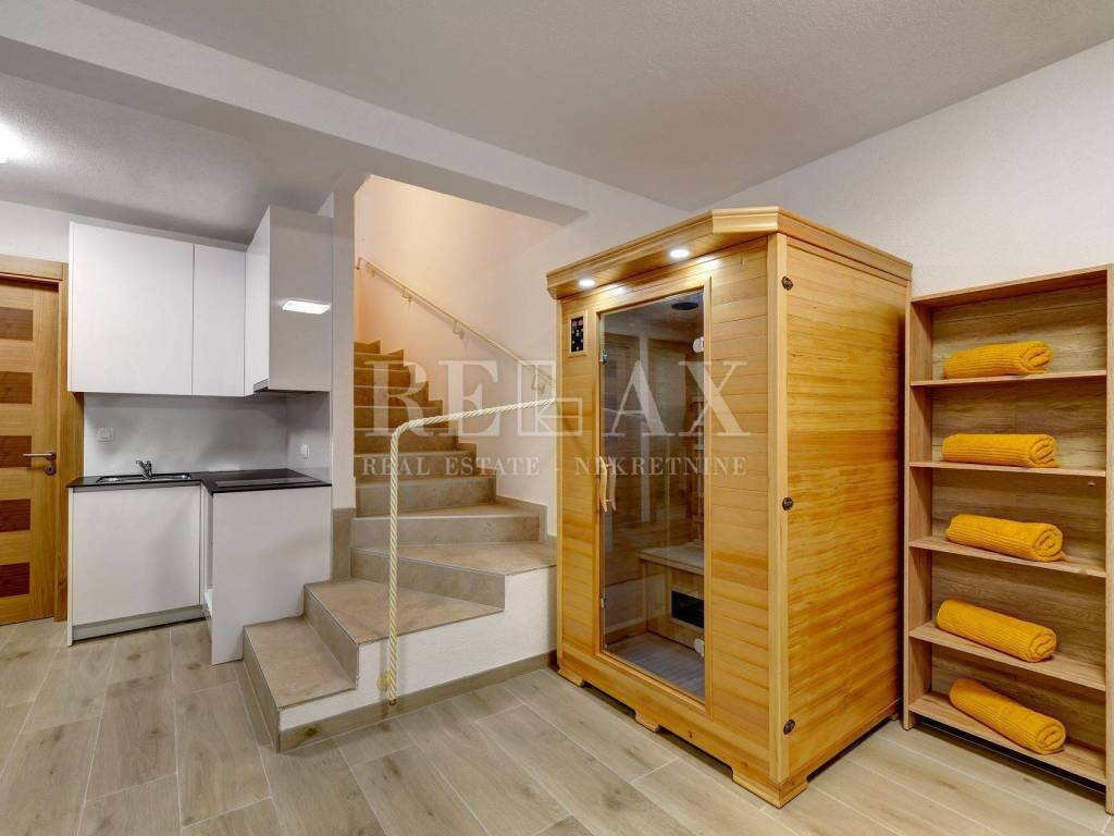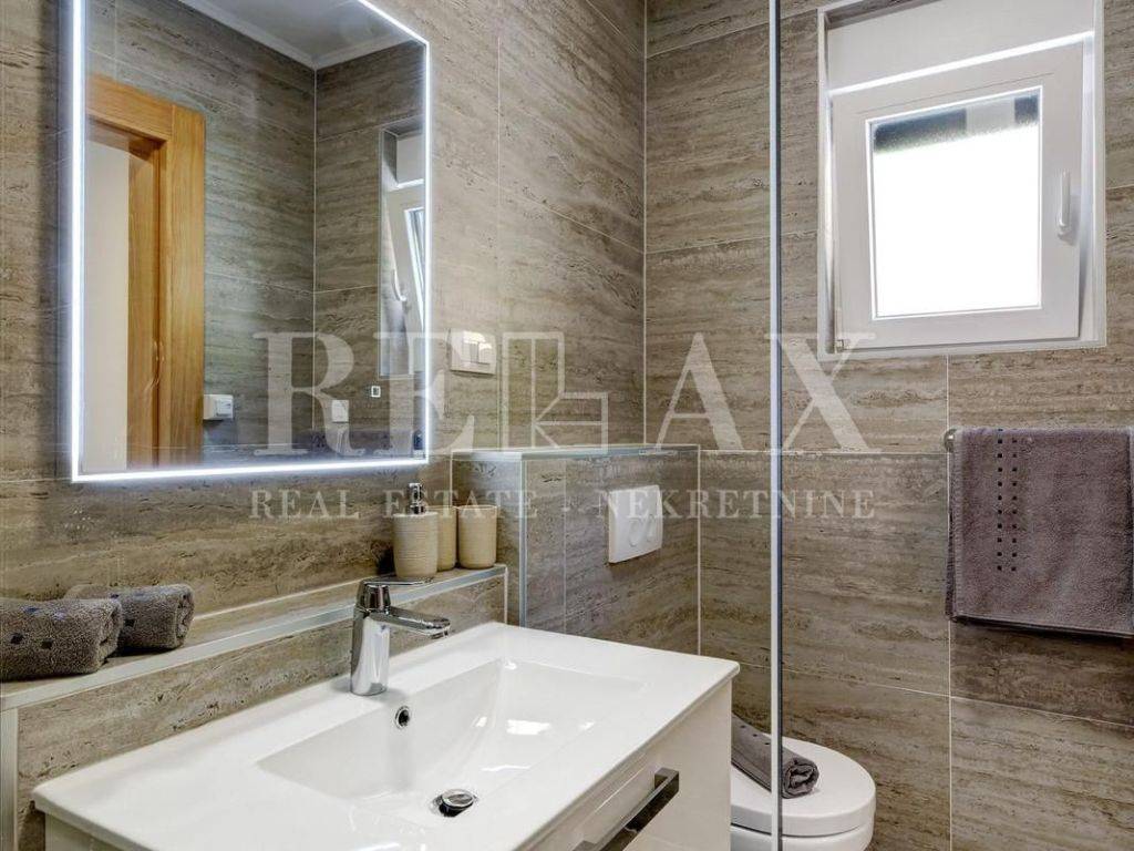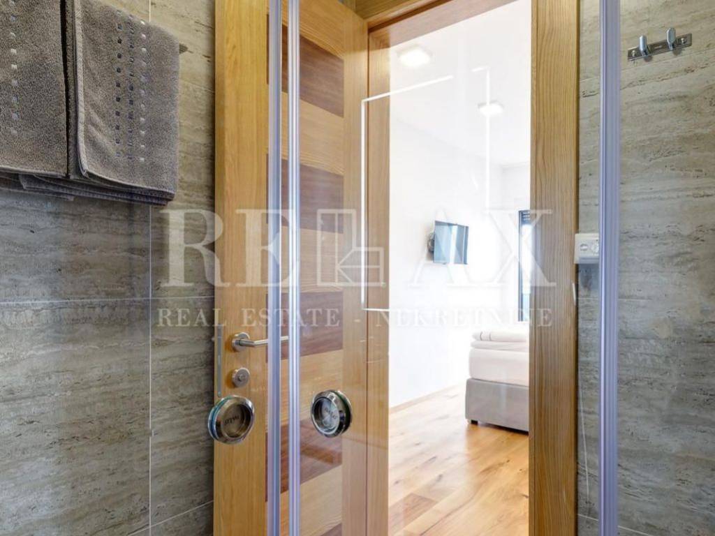 Al piano terra della casa c'è una camera da letto con il proprio bagno, un bagno, una cucina open space con soggiorno e un'uscita su una terrazza coperta di fronte alla quale si trova una piscina con area prendisole e una bellissima vista del mare e dell'isola di Krk.