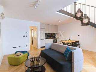 Questo bellissimo appartamento moderno a due piani in prima fila sul mare si trova a Volosko, Opatija.