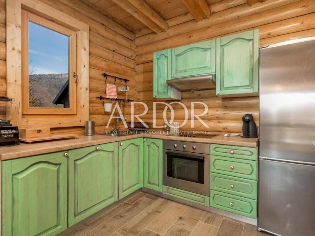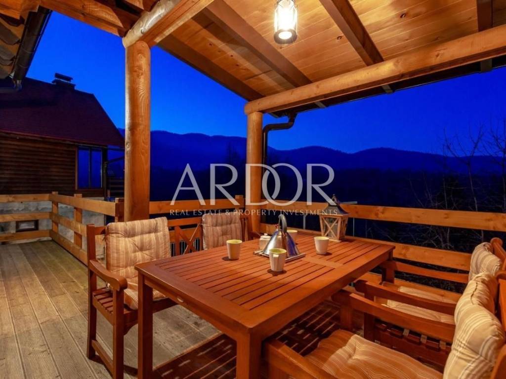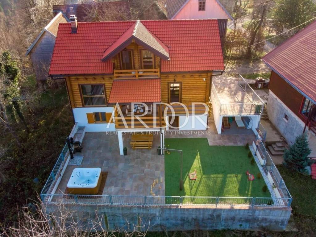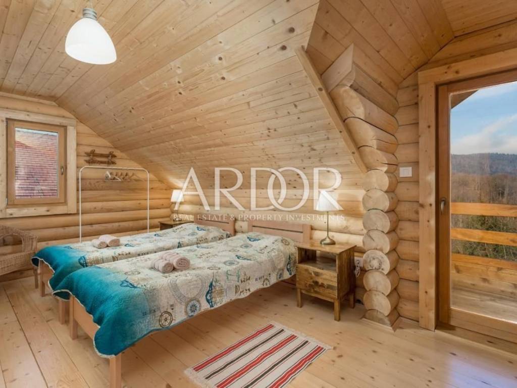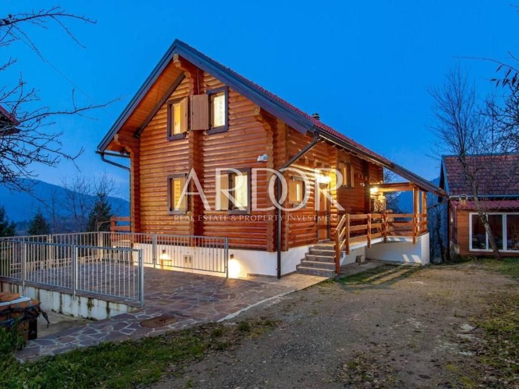 CASA di 250 m2 e 600 m2 di giardino, nel cuore del Gorski kotar, vicino a Delnice, dove ti senti come se fossi nella foresta! Questa casa è fatta di forme in legno, assemblate con cura dalla sapiente mano di un esperto! La casa è stata costruita nel 2018 e ha avuto una carriera di grande successo nell'affitto turistico. Questa oasi di montagna in legno, con interni confortevoli, caldi e intimi, si trova in un tranquillo paesino con una splendida vista sulle montagne del Gorski Kotar e sulla valle Kupska. Una vasca idromassaggio riscaldata, una terrazza coperta con vista sulle splendide montagne e il verde del Gorski Kotar susciteranno semplicemente un sospiro di sollievo da ogni viaggiatore. Al piano terra c'è una palestra, sale sociali, una taverna, una sala giochi per bambini, e fornisce tutti gli elementi per una vacanza edonistica nella natura. Questa casa, con le sue 4 camere da letto e tre bagni, offre una sistemazione eccellente e confortevole da 8 a 12 persone ed è una proprietà ideale per riunioni di famiglia, gruppi più numerosi e vacanze nella natura incontaminata e nel silenzio.