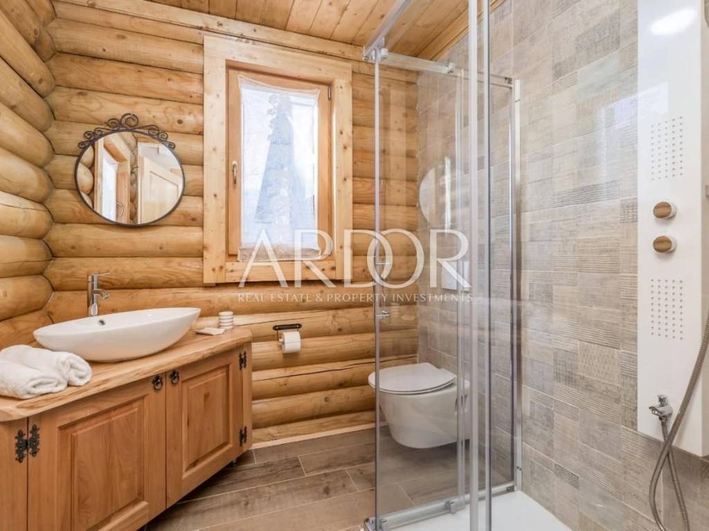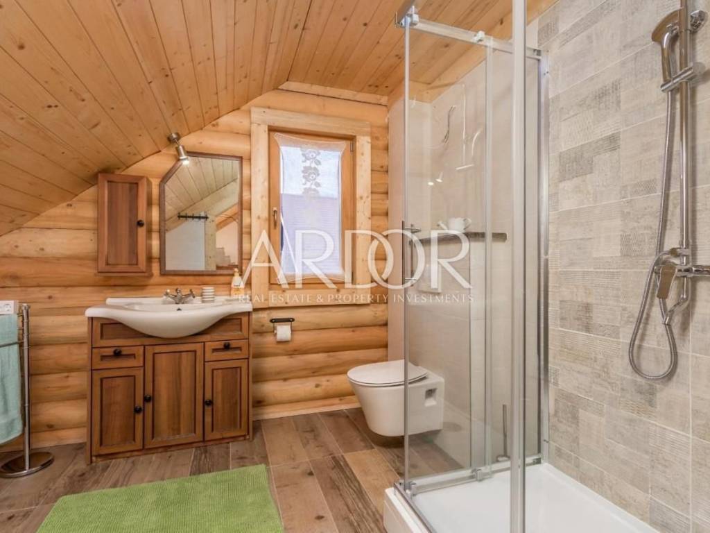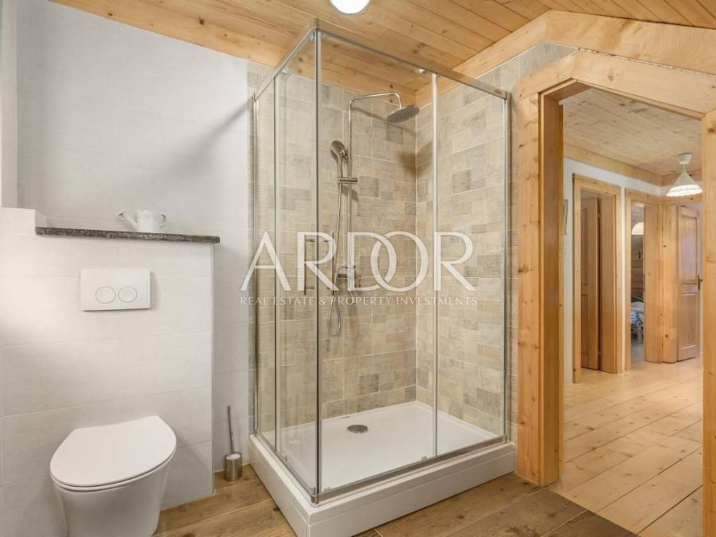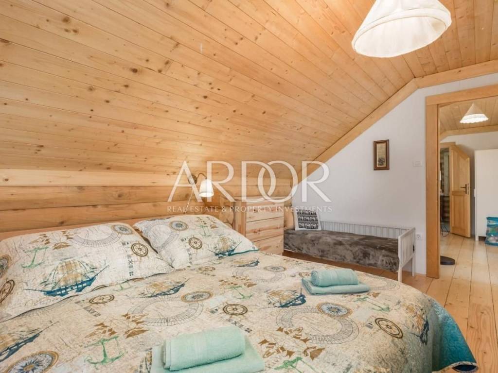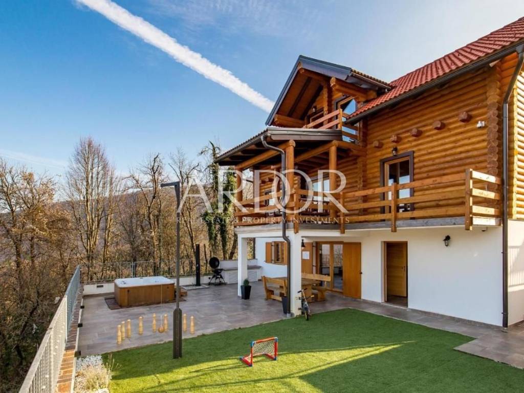 CASA di 250 m2 e 600 m2 di giardino, nel cuore del Gorski kotar, vicino a Delnice, dove ti senti come se fossi nella foresta! Questa casa è fatta di forme in legno, assemblate con cura dalla sapiente mano di un esperto! La casa è stata costruita nel 2018 e ha avuto una carriera di grande successo nell'affitto turistico. Questa oasi di montagna in legno, con interni confortevoli, caldi e intimi, si trova in un tranquillo paesino con una splendida vista sulle montagne del Gorski Kotar e sulla valle Kupska. Una vasca idromassaggio riscaldata, una terrazza coperta con vista sulle splendide montagne e il verde del Gorski Kotar susciteranno semplicemente un sospiro di sollievo da ogni viaggiatore. Al piano terra c'è una palestra, sale sociali, una taverna, una sala giochi per bambini, e fornisce tutti gli elementi per una vacanza edonistica nella natura. Questa casa, con le sue 4 camere da letto e tre bagni, offre una sistemazione eccellente e confortevole da 8 a 12 persone ed è una proprietà ideale per riunioni di famiglia, gruppi più numerosi e vacanze nella natura incontaminata e nel silenzio.