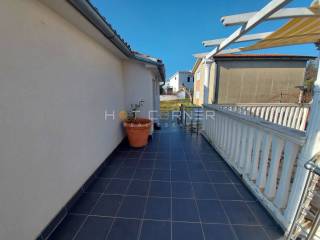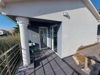 Offriamo 2 appartamenti a Medolino con una superficie abitabile complessiva di 105 m2 al piano terra e al primo piano della casa. L'appartamento al primo piano è composto da due camere da letto, un soggiorno con zona pranzo, una cucina, un bagno e una bella e ampia terrazza, in parte coperta. Bellissima vista! L'appartamento mostrato nelle foto si trova al primo piano ed è completamente arredato.