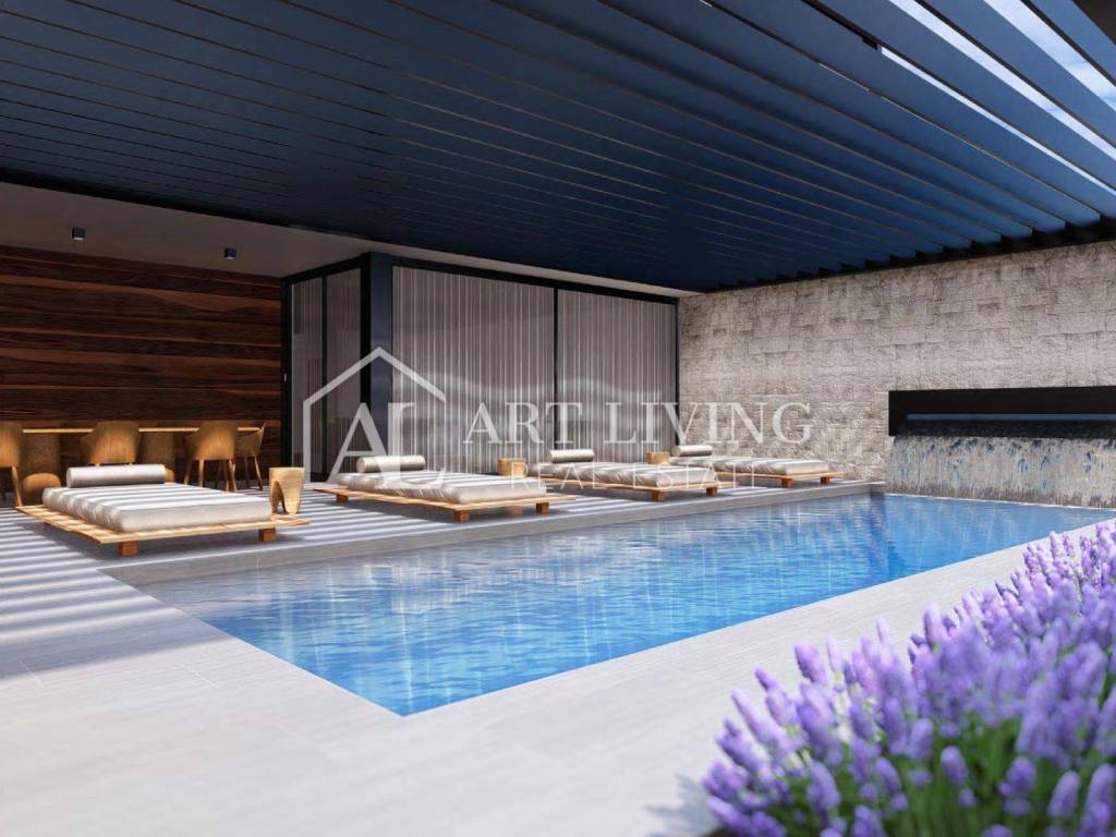 In vendita un lussuoso appartamento bilocale con piscina dal design moderno in un nuovo edificio, in una posizione tranquilla e bella, a soli 7 km dalla città di Parenzo e 1,5 km dal mare e dalle spiagge ben curate.