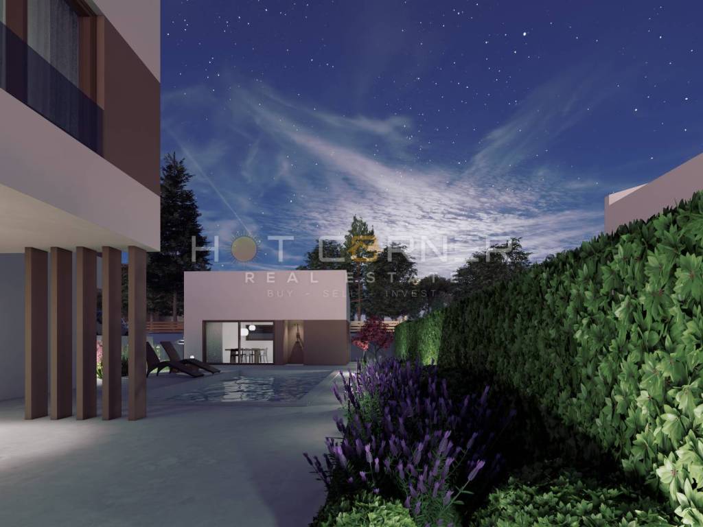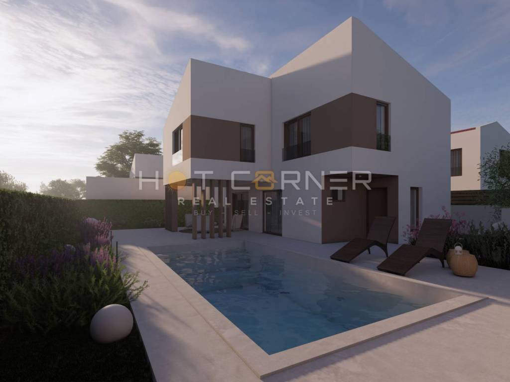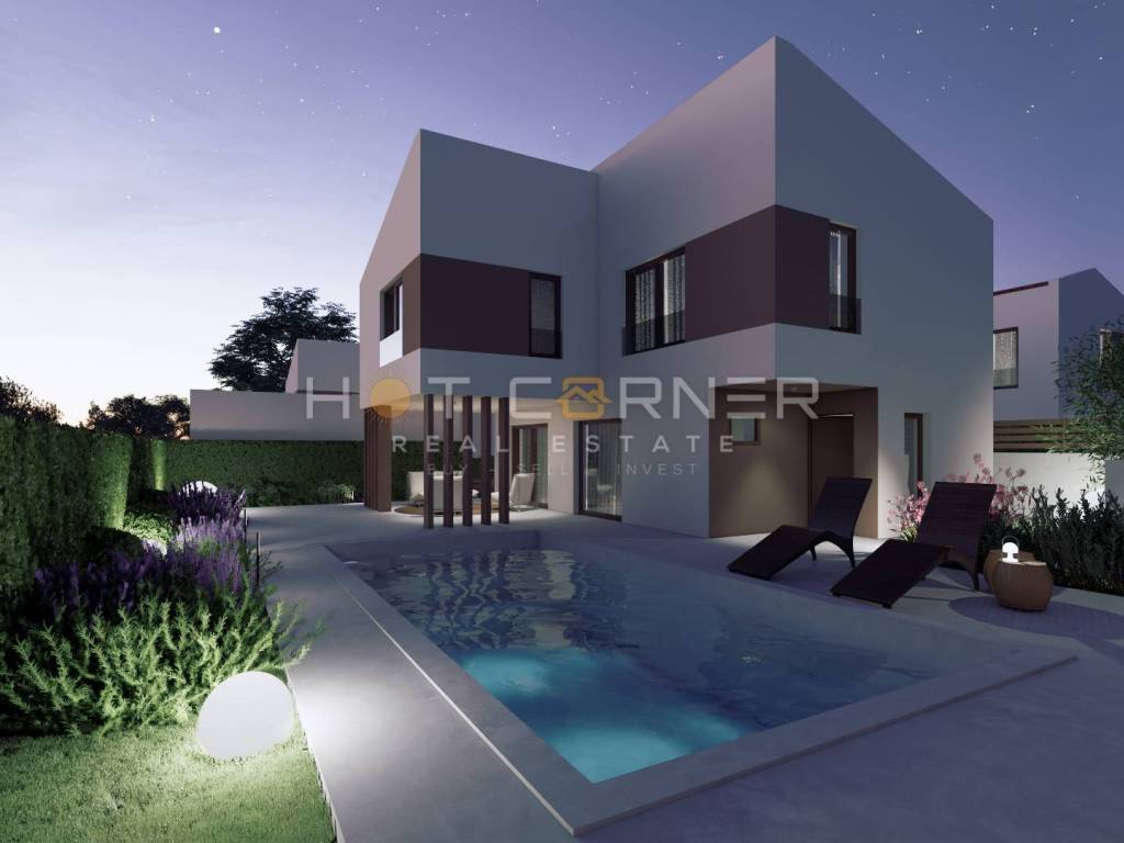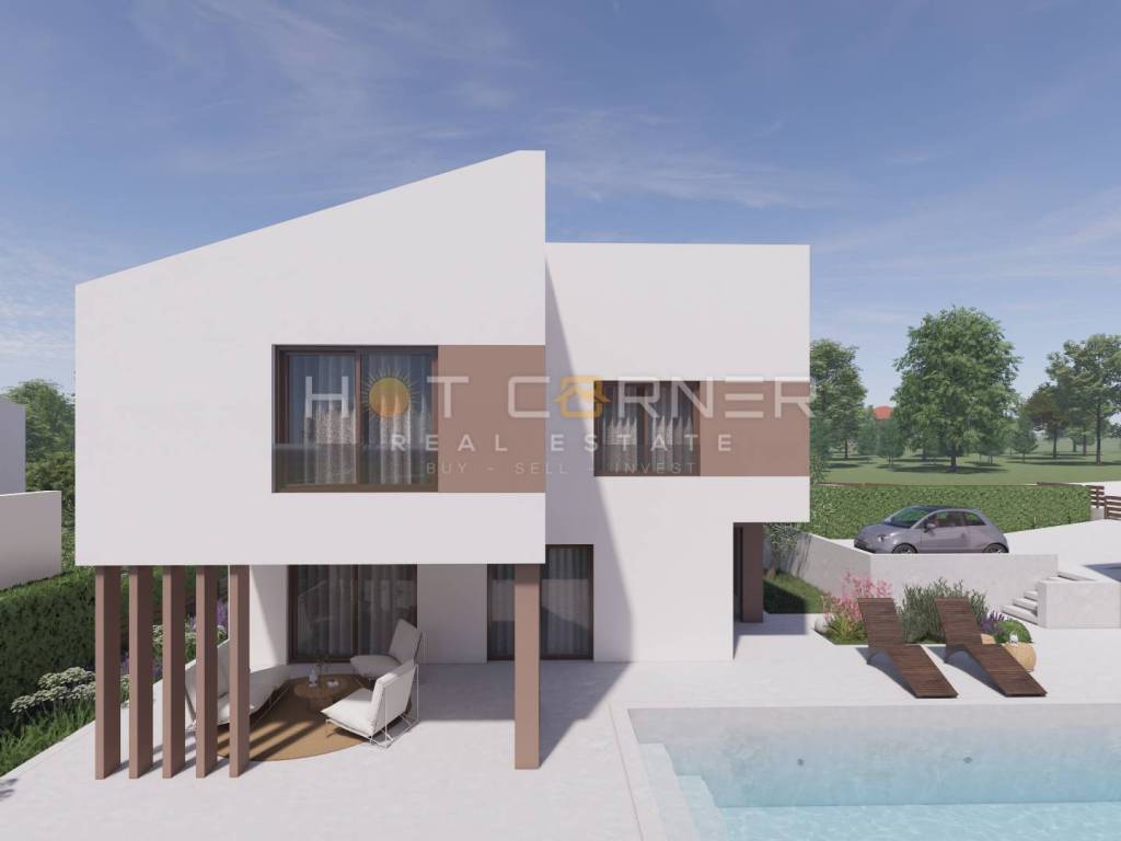 In vendita bel terreno edificabile a circa 5 chilometri da Dignano, con un progetto. Gli appezzamenti sono di dimensioni regolari, da 498 m2 a 593 m2. E' stata depositata tutta la documentazione per il rilascio della concessione edilizia. Il terreno viene fornito con un meraviglioso progetto, ogni villa progettata con una unità residenziale, che si estende attraverso il piano terra e il 1° piano.