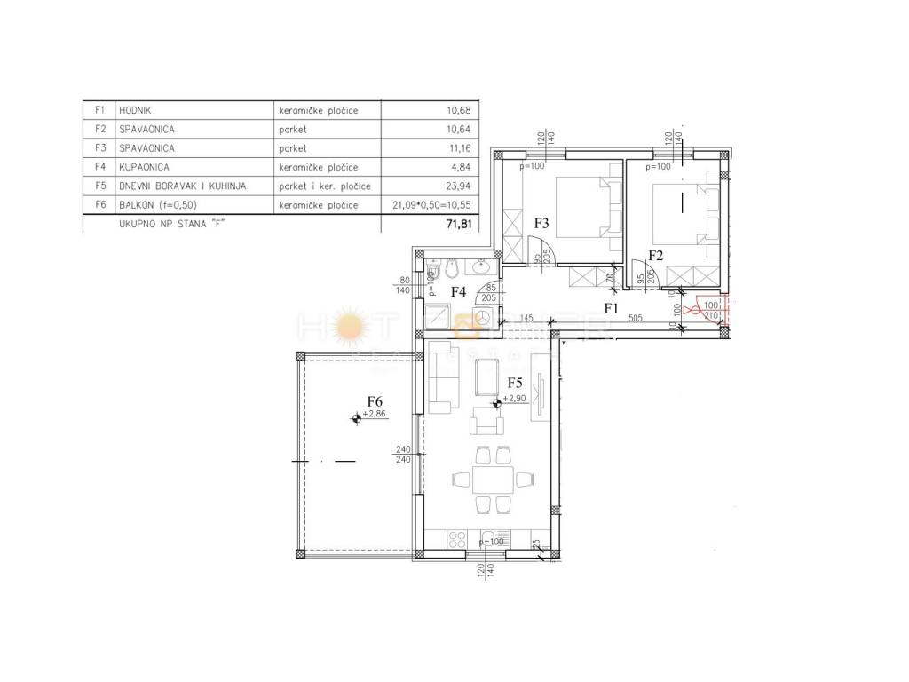 Appartamento F al 1° piano = 71,81 mq + posto auto esterno = 74,94 mq = 299.760,00 euro