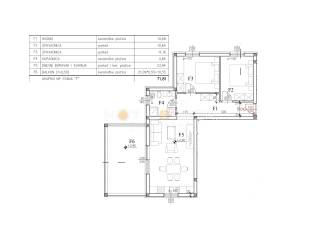 In vendita un bellissimo appartamento moderno in una nuova costruzione a Barbariga, Vodnjan, superficie 63,52 m2, al 1° piano di una piccola palazzina residenziale con solo 6 appartamenti con vista mare. L'edificio si trova a soli 300 m dal mare e dalle spiagge. L'appartamento si trova al 1° piano ed è composto da ingresso (10,68 mq), 2 camere da letto (10,64 mq e 11,16 mq), soggiorno con cucina e sala da pranzo (23,94 mq), bagno (4,84 mq) e ampio terrazze (21,09 mq, superficie netta ridotta 10,55 mq). Complessivamente 71,81