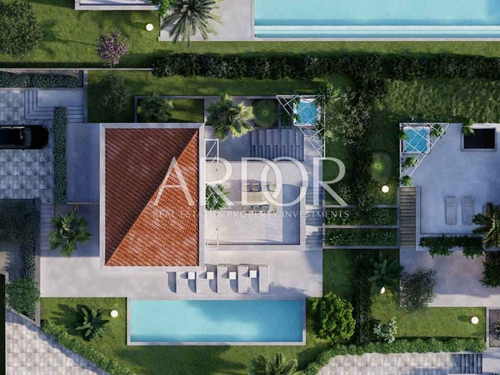 In una posizione tranquilla sull'isola di Veglia, su un terreno di 623 m², si trova una moderna villa con vista mare che offre elevati standard abitativi, comfort e privacy. La villa si sviluppa su due piani, con un totale di 150 m² di interni accuratamente progettati e ulteriori 282 m² di terrazze coperte e scoperte, ideali per godersi gli spazi all'aperto.