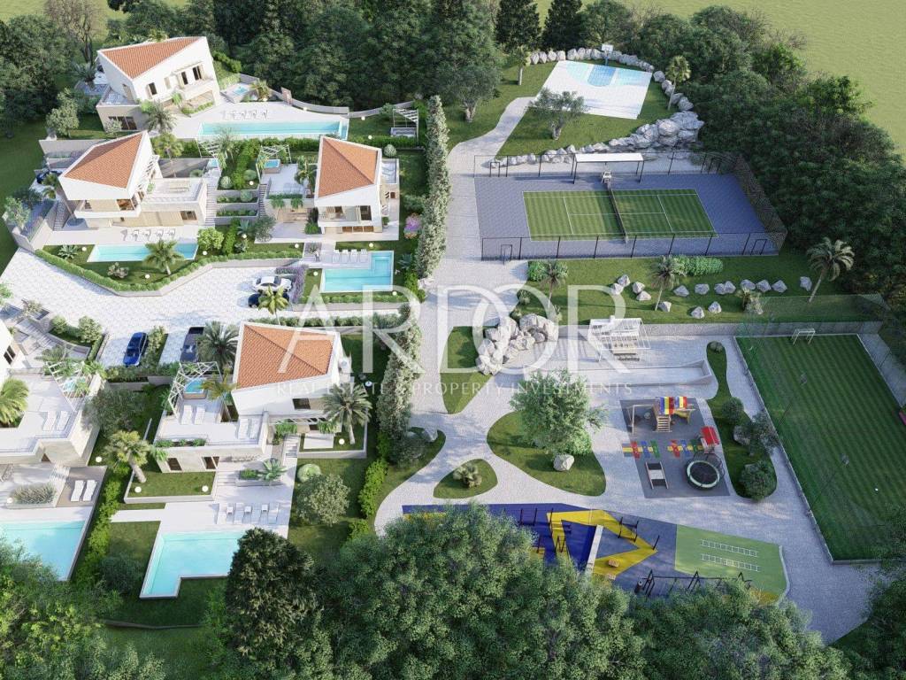 Fa parte di un complesso di lusso che comprende cinque ville, con servizi in comune tra cui un campo da tennis, campi da basket e da calcetto, una palestra all'aperto e un parco giochi per bambini.