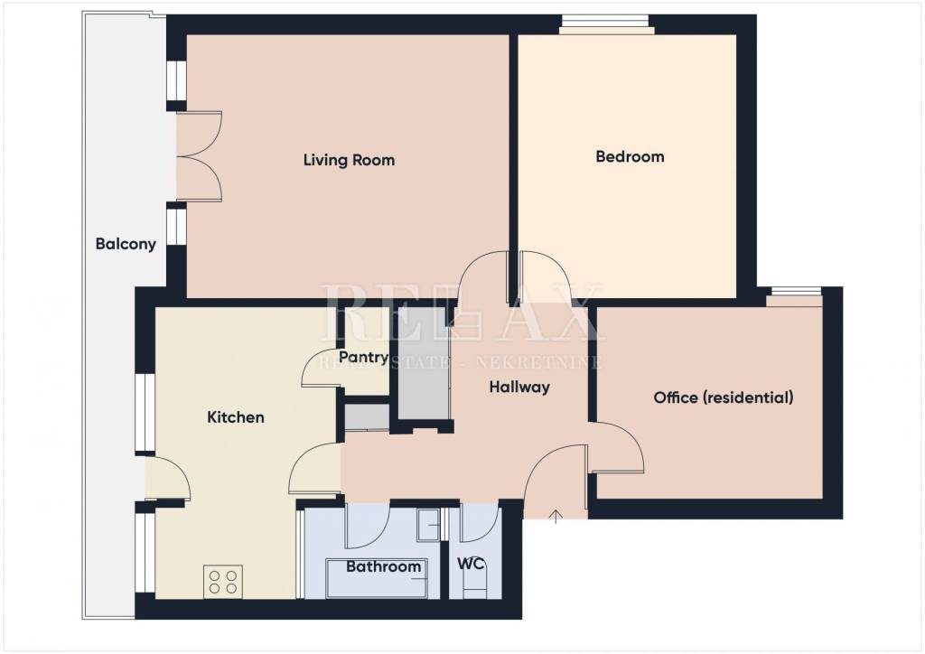 L'appartamento è funzionalmente distribuito e comprende un ingresso, cucina, ripostiglio, spazioso soggiorno, bagno, WC separato e due camere da letto, rendendolo ideale per la vita familiare o come investimento per affitti turistici.
