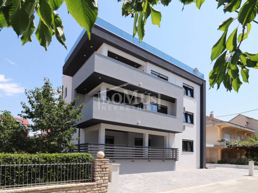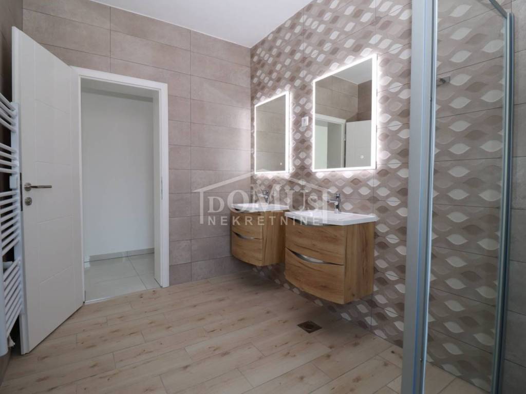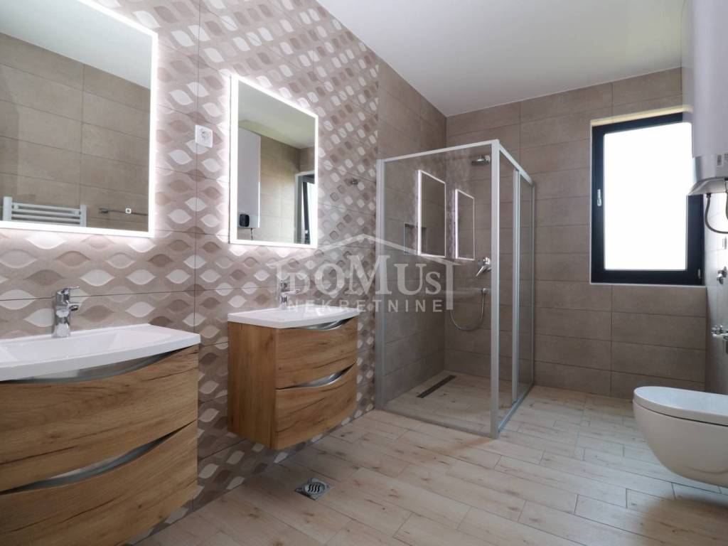 Vodice, a new furnished villa with a total of 3 residential units, 400m from the beach Lovetovo and 1300m from the city center. The apartments are built to a high standard of quality, equipped with air conditioning, underfloor heating, the apartments have a chimney installed for a solid fuel stove.