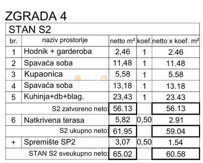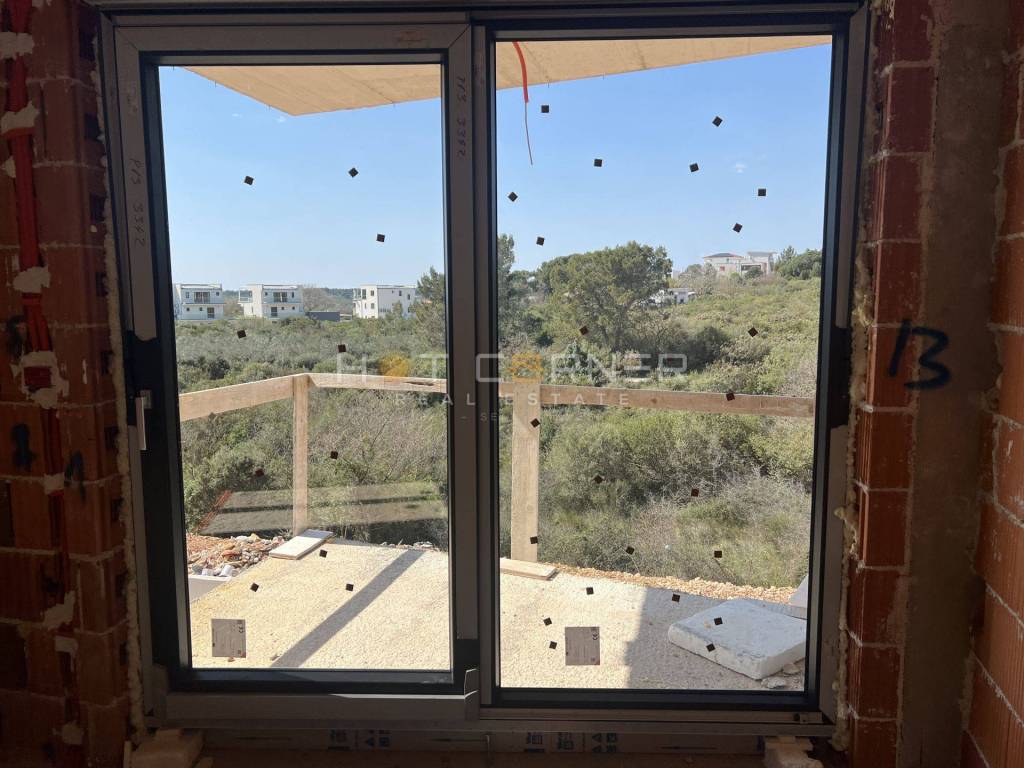 Proponiamo un appartamento situato al 1° piano dell’edificio 4, con una superficie utile netta totale di 63,96 m². Composto da: ingresso, due camere da letto, bagno, soggiorno open space, terrazza coperta di 5,82 m² con vista mare e sulla baia di Medulin + ripostiglio al piano terra di 4,74 m² + un posto auto esterno. Prezzo dell’appartamento: 223.860 €.
