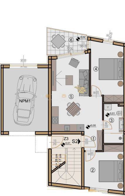 L’acquirente può optare per un garage chiuso (20,50 m²) invece del posto auto esterno; in tal caso il prezzo dell’immobile aumenta di 33.705 €, per un totale di 257.560 €.