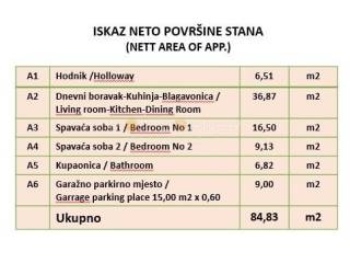 Offriamo un appartamento al 3° piano, con una superficie netta totale di 84,83 m2, di cui l'appartamento stesso ha 75 m2 + un posto auto in garage di 15 m2. L'appartamento è composto da un ingresso, un soggiorno open space con cucina e zona pranzo, due camere da letto e un bagno.