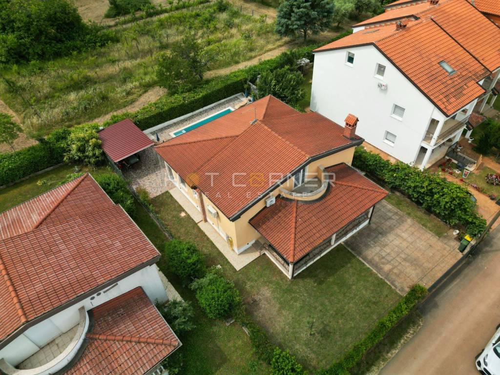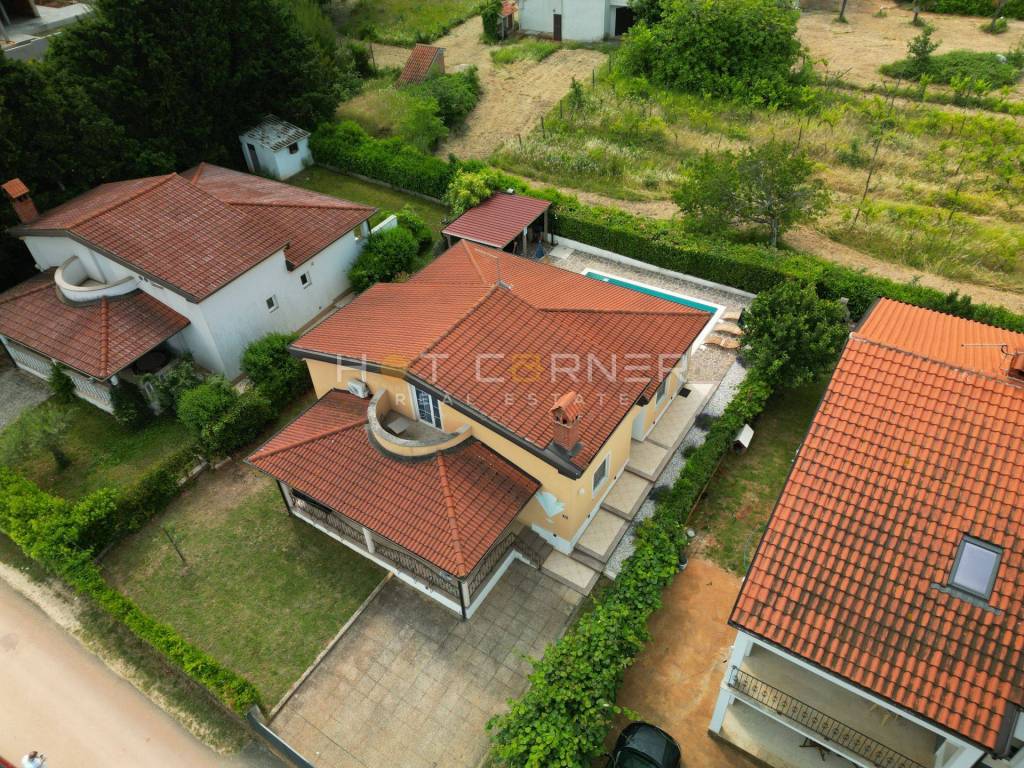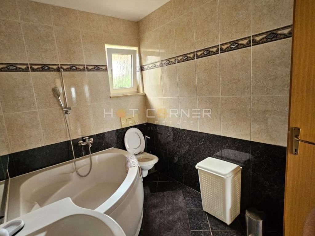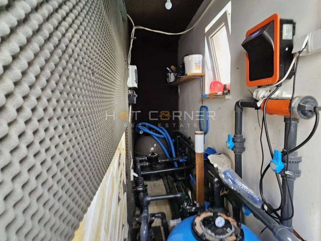La proprietà dispone di tre bagni – due all'interno della casa e uno situato accanto alla piscina esterna, che è un vero paradiso per il relax. La superficie totale della casa è di 155 m², mentre si estende su un terreno di 492 m². Davanti alla casa ci sono tre posti auto, con ulteriore spazio per un giardino.