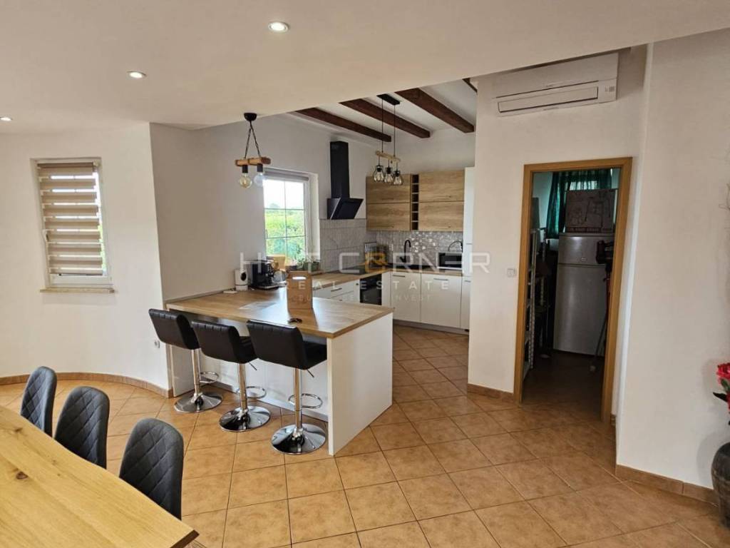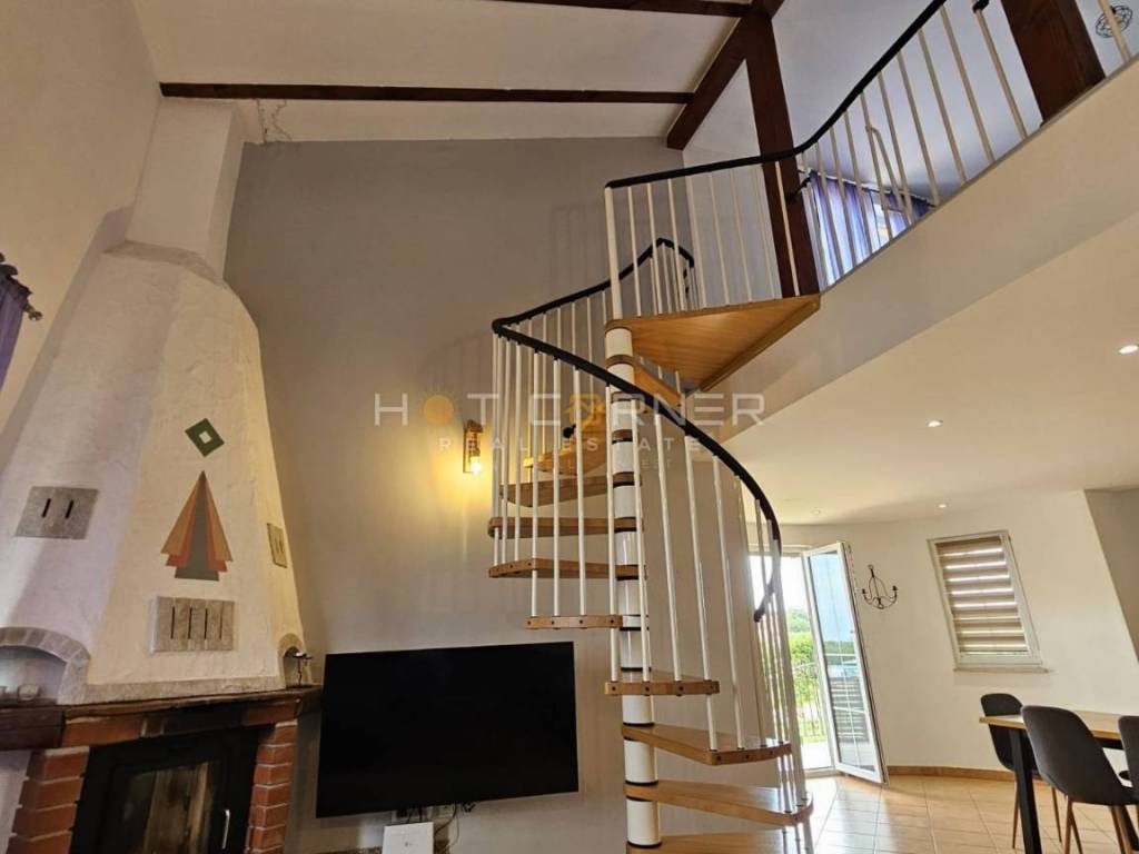 Una bellissima casa vicino a Parenzo che offre la combinazione perfetta tra vita moderna e un'oasi tranquilla. Costruita nel 2003 e completamente rinnovata nel 2021, questa casa offre comfort e funzionalità di alto livello. È composta da quattro ampie camere da letto, un ampio soggiorno con zona pranzo e cucina, dove spiccano un bellissimo camino e una elegante scala che porta alla galleria.