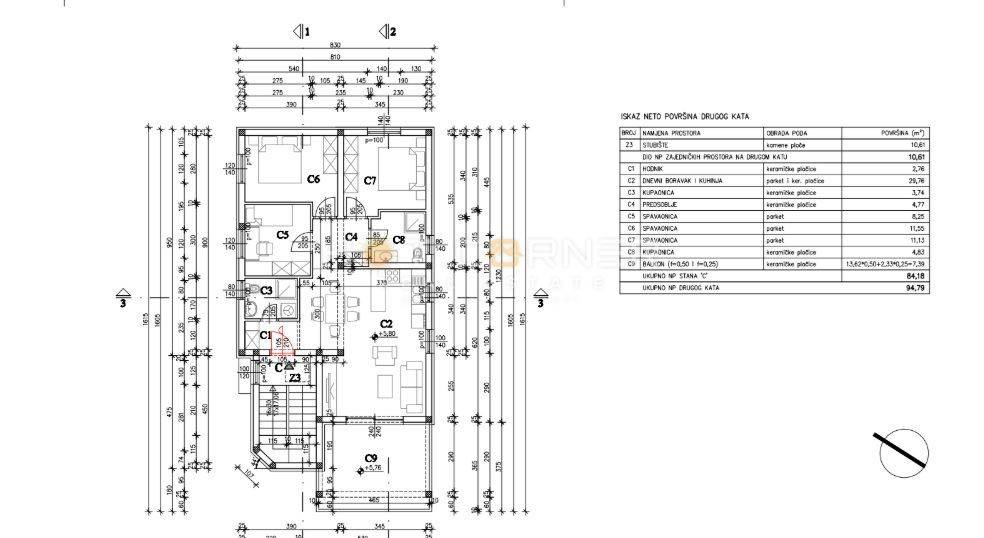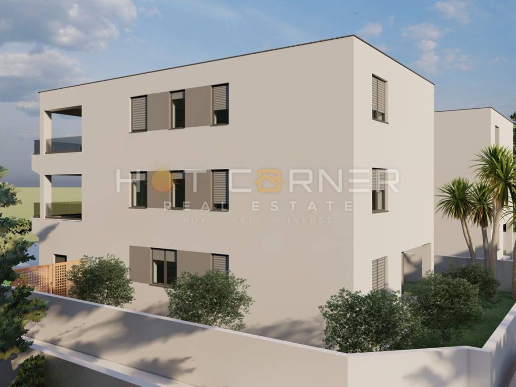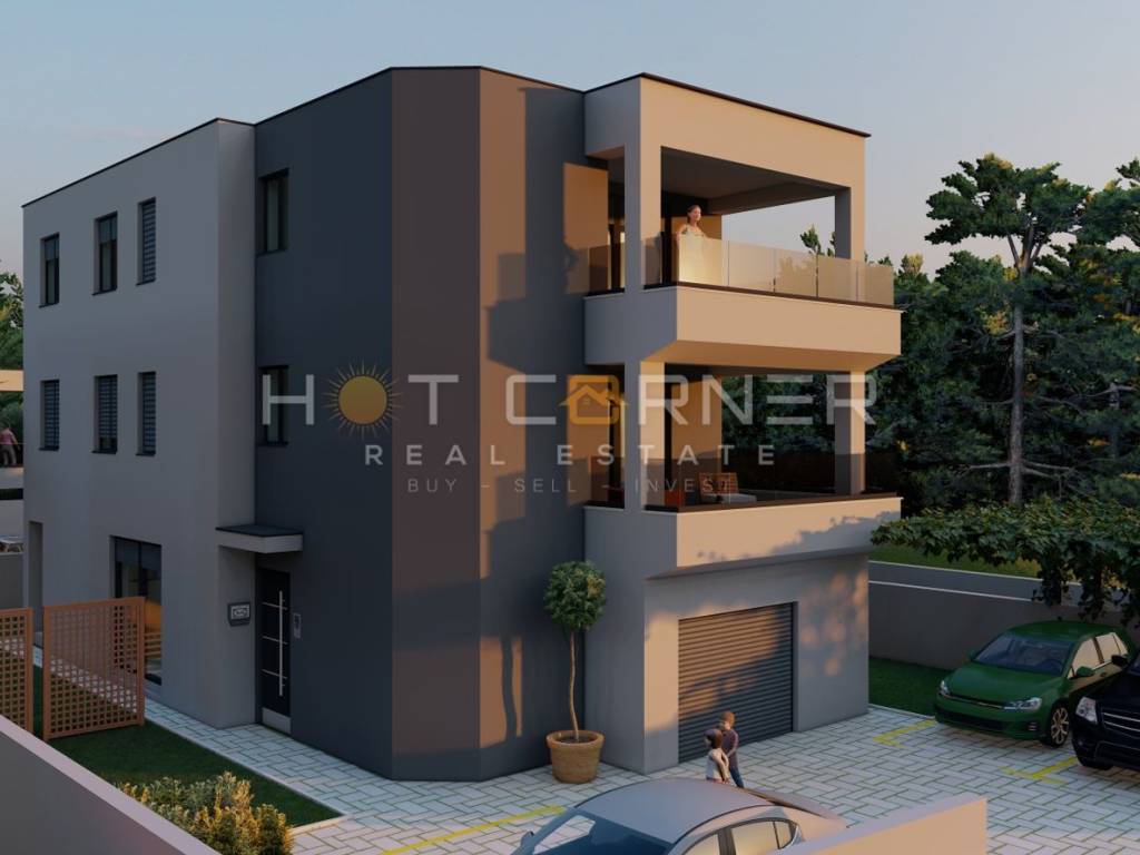 Ampio appartamento al 2° piano, 84,77 m², vista mare parziale, 3 camere da letto, 2 bagni, ampia terrazza di 16 m² + posto auto esterno, €335.000.