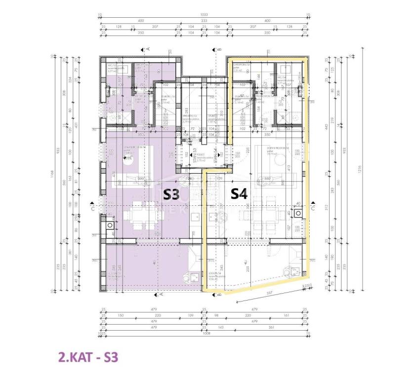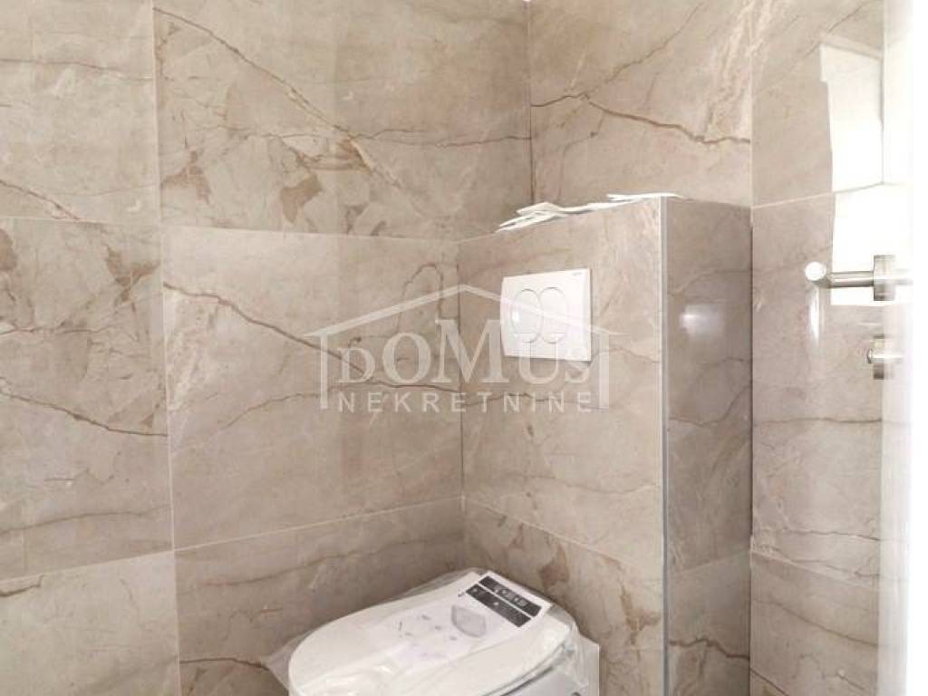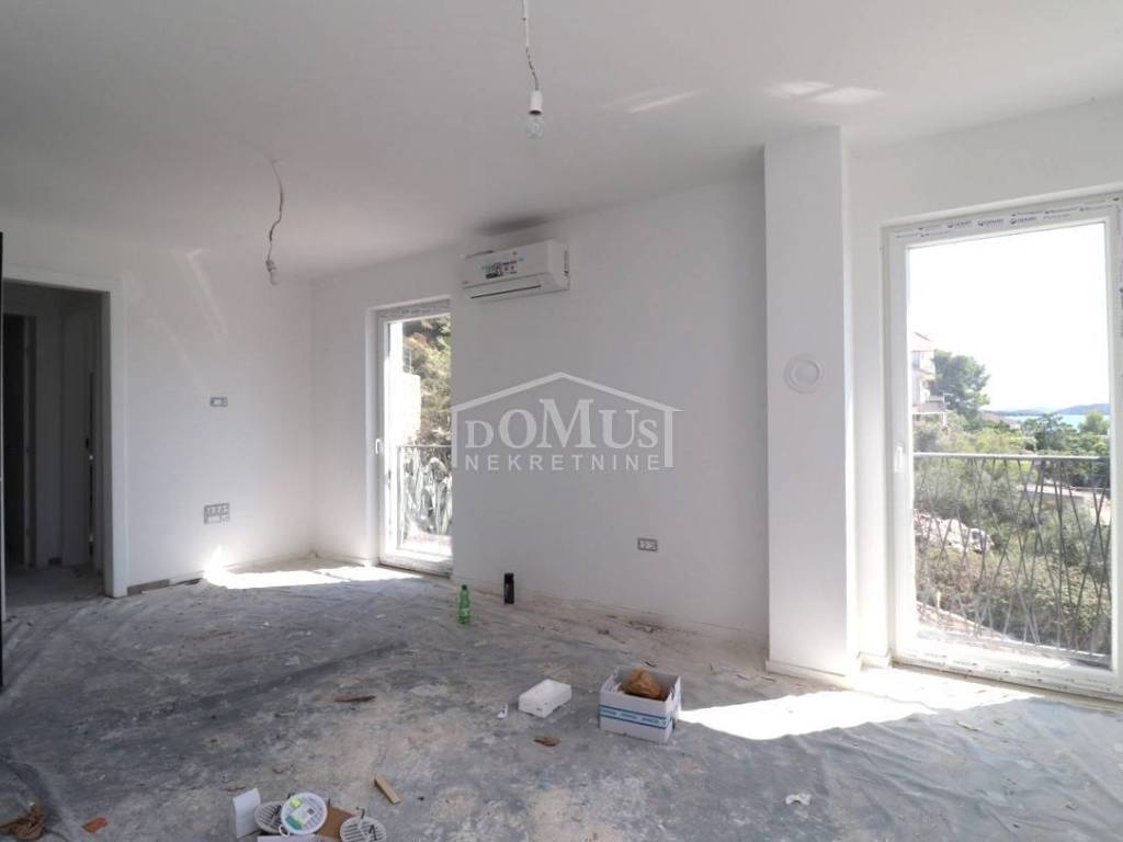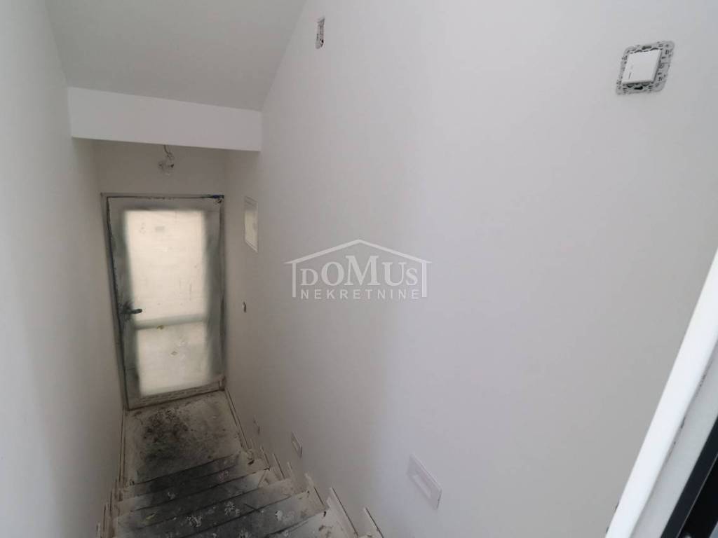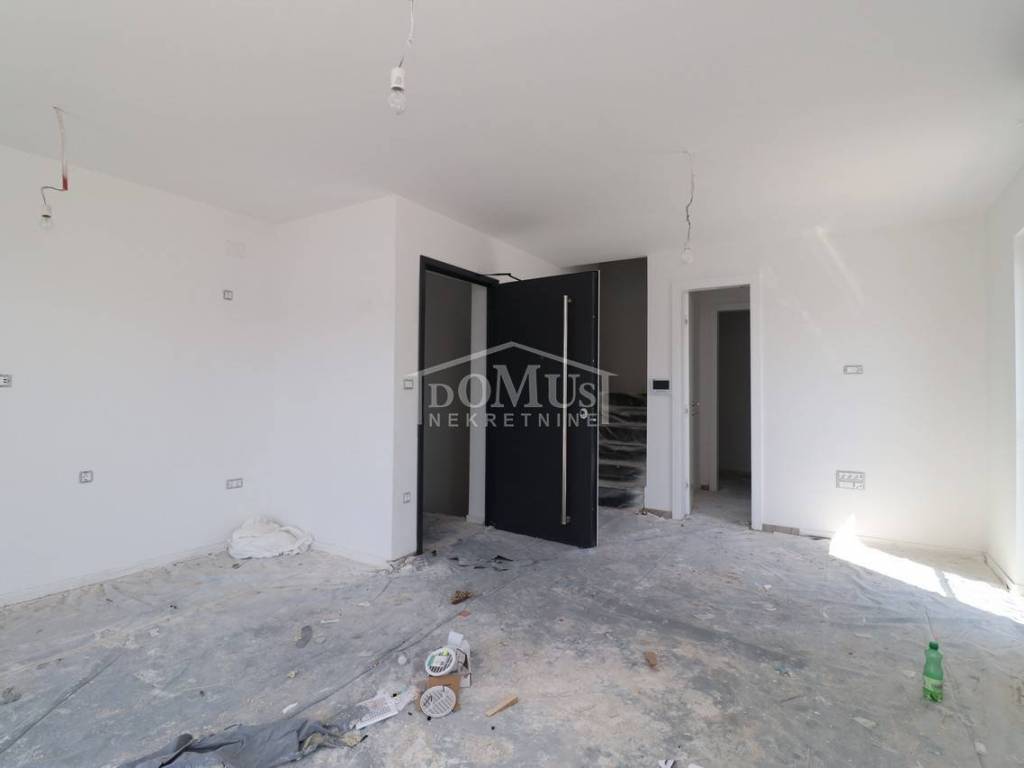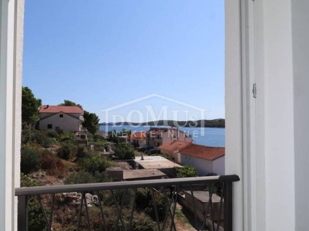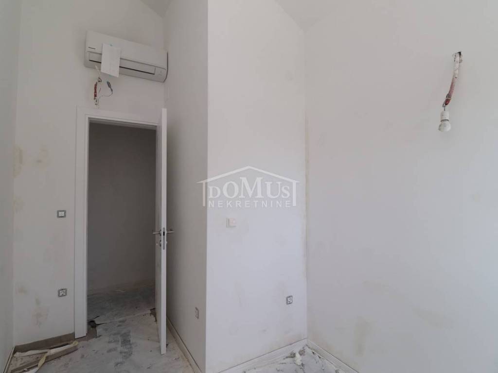 New construction, attractive location, 2nd row to the sea, two-story apartment with a panoramic view of the sea with a total of 86.02 m2 of usable area. The apartment has a modern design and functional layout and is located on the 2nd floor and attic of a residential building, oriented to the southwest. It consists on the 2nd floor of an entrance hall, a bathroom, a living room with a kitchen and a dining room, a loggia of 9.96 m2, a staircase, and in the attic three bedrooms and a bathroom. The apartment is built of high-quality materials, equipped with Panasonic air conditioners (multi-split system) in every room, electric underfloor heating throughout the apartment, heat pump for hot water, PVC carpentry with aluminum shutters with mosquito nets, anti-burglary/fire doors. The apartment has one garage parking space of 14.5 m2 (Hormann electric lift garage door) and a storage room. The apartment is 70 m from the beach and 1200 m from the town center.