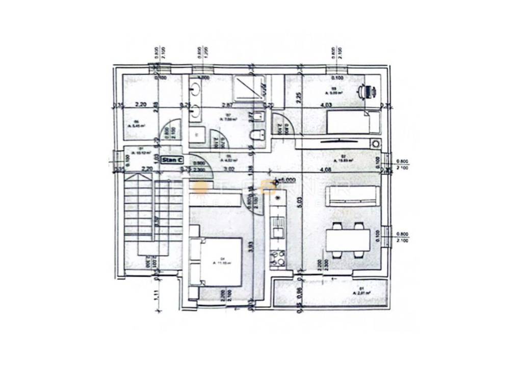L'edificio è composto da sole tre unità abitative, il che garantisce tranquillità, privacy e un'atmosfera piacevole. La superficie totale dell'appartamento è di 51,39 m² e la disposizione degli ambienti è stata attentamente progettata per offrire la massima funzionalità e comfort. L'appartamento è composto da due camere da letto, una più grande di 11,10 m² e una più piccola di 9,12 m², un ampio soggiorno con cucina e zona pranzo di 19,93 m², un moderno bagno con finestra di 4,10 m² e un ingresso di 4,17 m². Inoltre, l'appartamento dispone di una loggia di 3,95 m² (calcolata come 2,97 m²), perfetta per il caffè del mattino o per rilassarsi all'aperto.