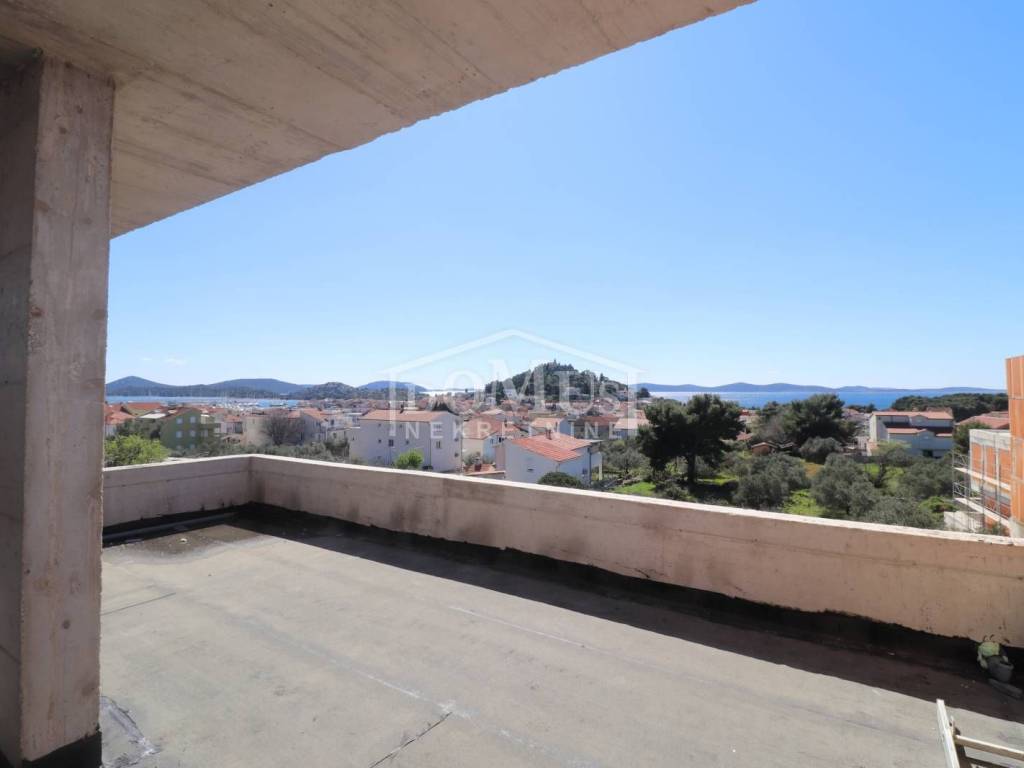 Beautiful house in Tribunj, with a beautiful sea view. The house is a semi-detached house, on 3 floors Ground floor + 1st floor + 2nd floor with a total usable area of ​​243.45 m2 and approximately 400m2 of garden with a large terrace, swimming pool, and 3 parking spaces. On the ground floor of the building there is a hallway, bathroom, spacious kitchen with dining room and living room and access to a beautiful terrace and outdoor courtyard where the swimming pool is located, bedroom. Internal stairs lead to the 1st floor which consists of 3 bedrooms, 1 of which with its own bathroom, bathroom, and two rooms have access to a large covered terrace with a beautiful sea view. Internal stairs lead to the 2nd floor where there is a kitchenette, room, bathroom, and a large terrace of 53.65 m2 (of which 40.60 m2 is covered) with a panoramic sea view.