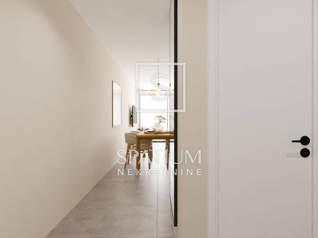 PARENZO, VABRIGA – In vendita moderno appartamento bilocale in una nuova costruzione di alta qualità, situato a soli 1500 metri da una spiaggia di ciottoli ben curata. L’appartamento si trova in un edificio con un totale di 10 unità abitative distribuite su quattro piani. Si compone di ingresso, ampio soggiorno con cucina e zona pranzo (40,93 m²), due camere da letto (10,65 m² e 8,40 m²), bagno (4,64 m²), ripostiglio (1,55 m²) e terrazza coperta di 5,33 m². Inoltre, l’appartamento dispone di una cantina di 2,7 m² e di un posto auto privato – tutto incluso nel prezzo. L’edificio è dotato di ascensore, mentre gli appartamenti dispongono di riscaldamento a pavimento elettrico nei bagni e condizionatori inverter nel soggiorno e nelle camere. I serramenti di alta qualità, con parete in vetro alluminio e vetri doppi, garantiscono eccellente isolamento termico e acustico. Il completamento della costruzione è previsto per il 2025, e l’acquirente è esente dal pagamento dell’imposta di trasferimento immobiliare.