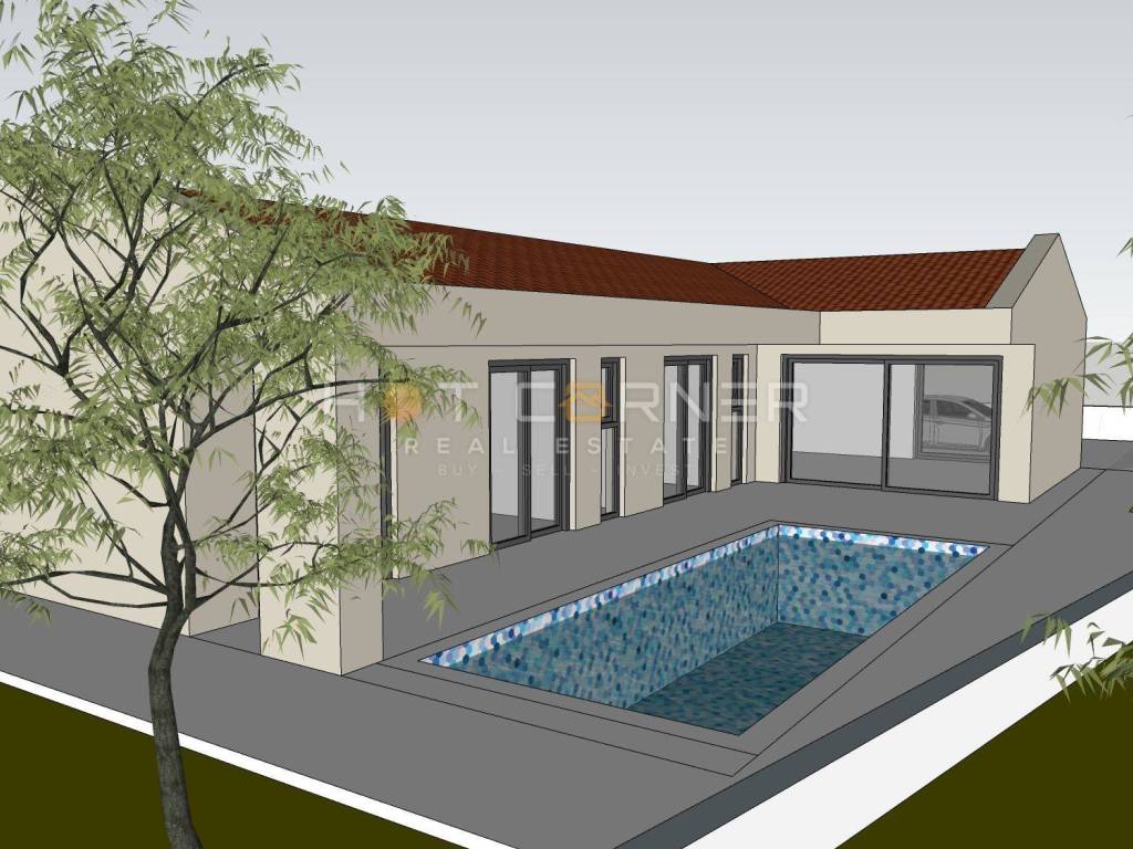 - lotto di 680 m² - progetto principale e permesso di costruire per una moderna casa a un piano (120 m² netti) con 3 camere da letto, ciascuna con il proprio bagno, ampia cucina open space, sala da pranzo e soggiorno, ripostiglio e WC separato, terrazza coperta. - piscina di 24 m² - 2 posti auto - giardino curato