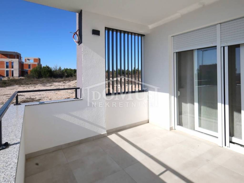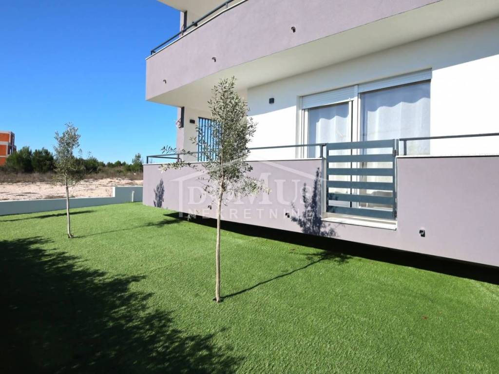 Vodice – New construction, quiet location, spacious two-bedroom apartment on the ground floor of a small residential building with a total of four apartments.