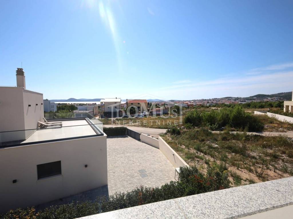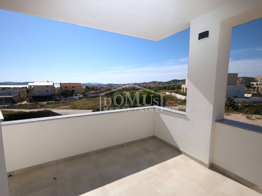 Vodice – New construction, quiet location, spacious two-bedroom apartment on the first floor of a small residential building with a total of four apartments, offering a sea view.