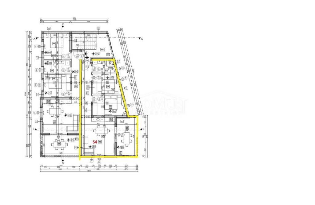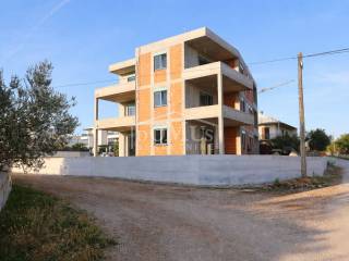 Completion of works is planned for summer 2026. Apartment S4 has a total usable area of 77.04 m², is located on the ground floor, and consists of an entrance hallway, two bedrooms (one of which includes a dressing room), a bathroom, and a kitchen with dining area and living room, which opens onto a covered terrace of 13.98 m². The apartment will be equipped with underfloor heating in the bathroom and living room, modern bathroom fittings, air conditioning in the living room and bedrooms, high-quality carpentry, windows with electric shutters, and security doors. The apartment includes one outdoor parking space.