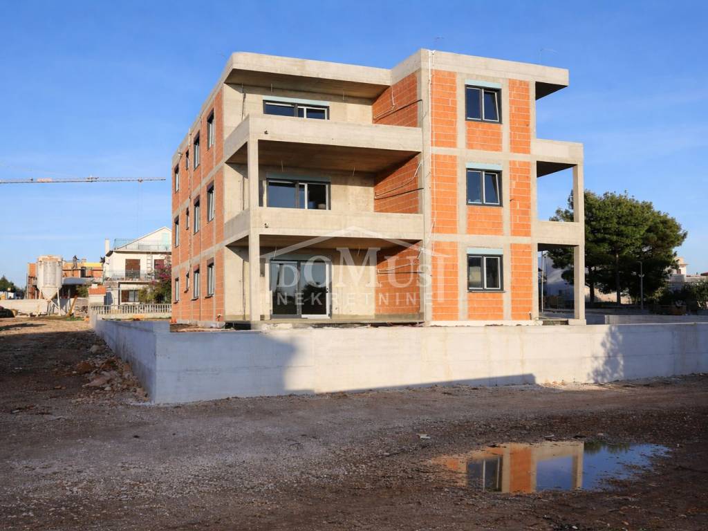 Completion of works is planned for summer 2026. Apartment S5 has a total usable area of 78.68 m², is located on the ground floor, and consists of an entrance hallway, two bedrooms, a bathroom, and a kitchen with dining area and living room, which opens onto a terrace with both covered and open sections (approx. 15.07 m²). The apartment will be equipped with underfloor heating in the bathroom and living room, modern bathroom fittings, air conditioning in the living room and bedrooms, high-quality carpentry, windows with electric shutters, and security doors. The apartment includes one outdoor parking space.