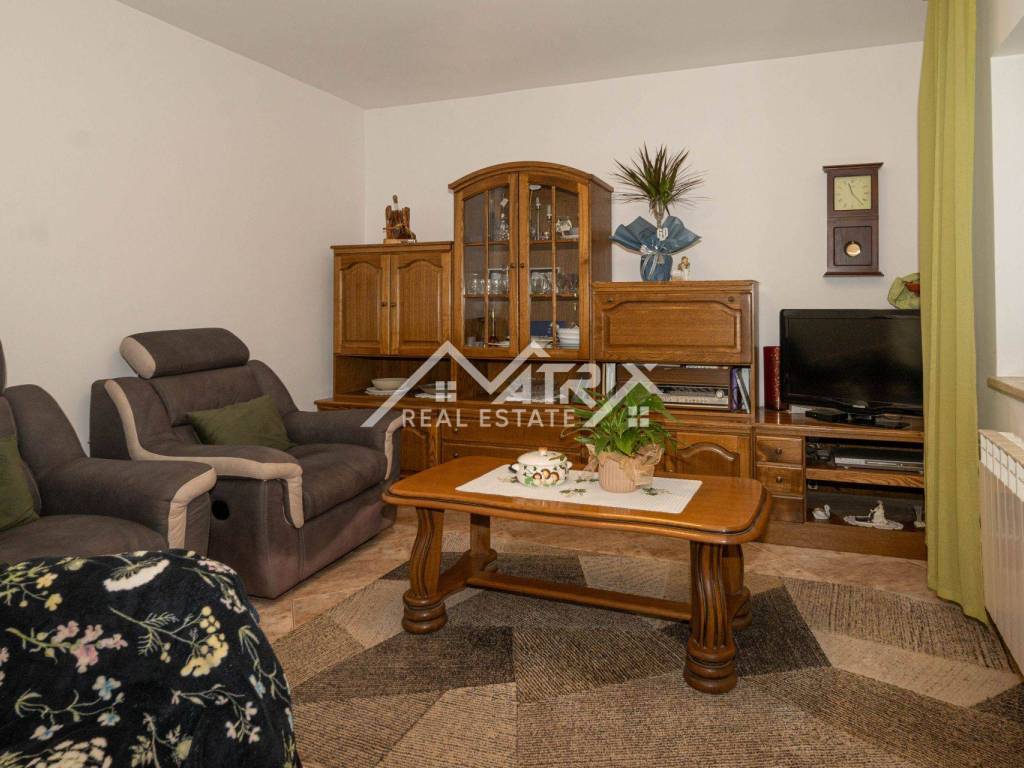 The house is equipped with a central wood heating system and air conditioners. The residential part is already adapted, furnished and ready for occupancy. An additional advantage is the possibility of dividing the house into two residential units, where one is already finished, while the other needs to be adjusted according to one's own preferences.