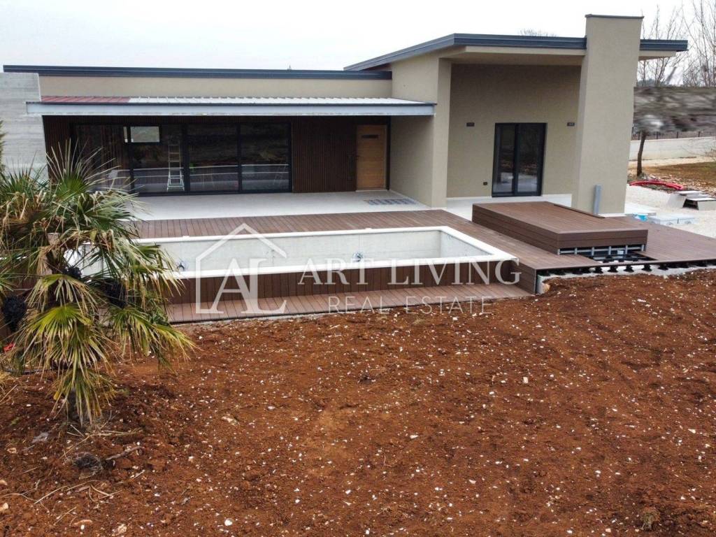 Una nuova casa prefabbricata indipendente di 120 m2 è in vendita in un posto tranquillo e bellissimo nell'Istria centrale, a 20 km dalla bellissima Rovigno e dalle sue bellissime spiagge e a soli 35 km dall'aeroporto di Pola.