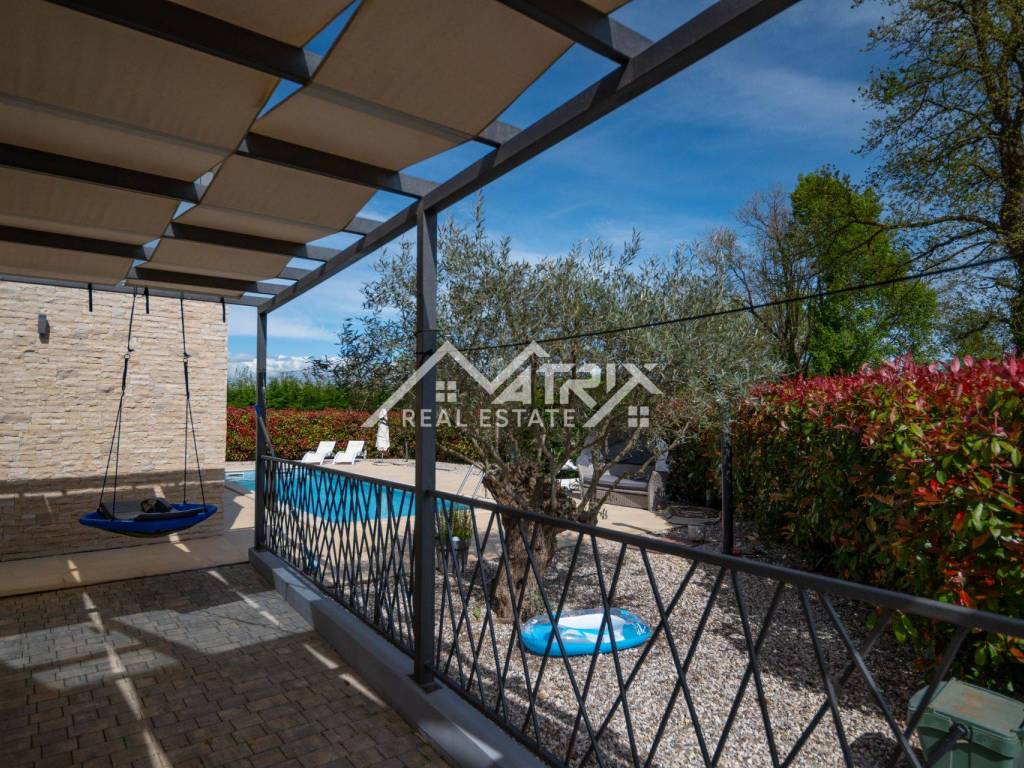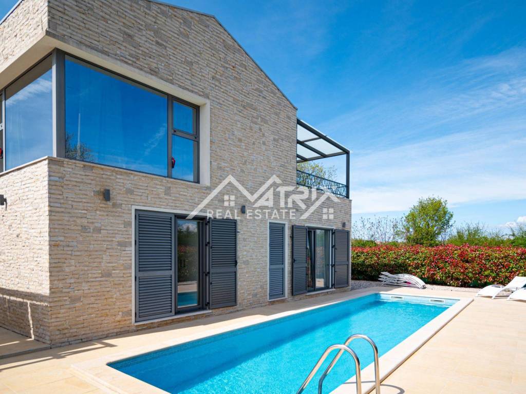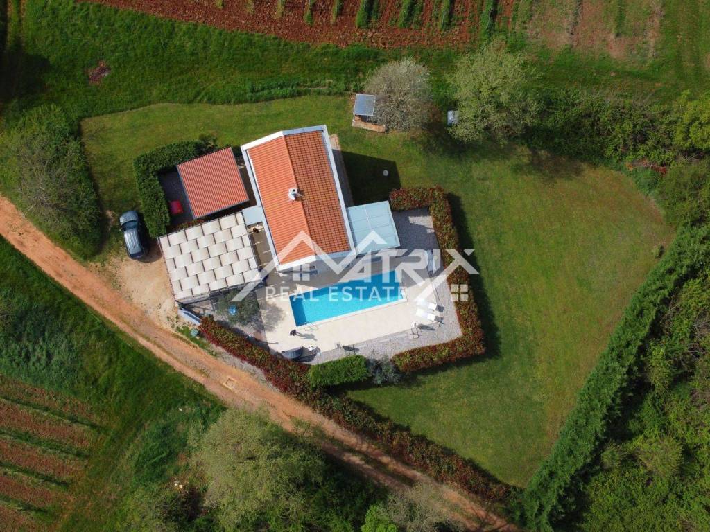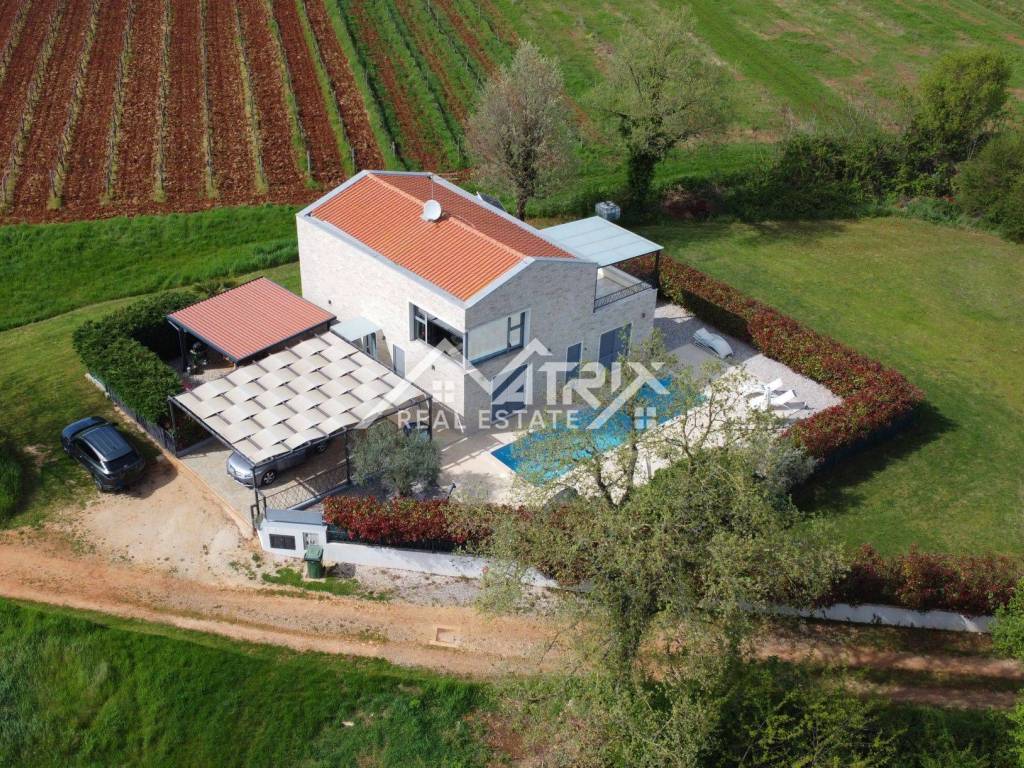 A beautiful, modern villa with a swimming pool for sale, located in a peaceful area of the Istrian countryside, just 5 km from the town of Novigrad and its beaches, 13 km from Umag, and 27 km from the Slovenian border.